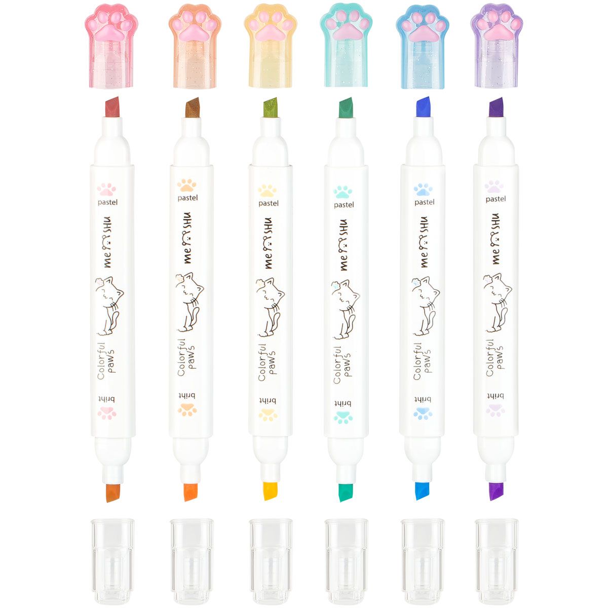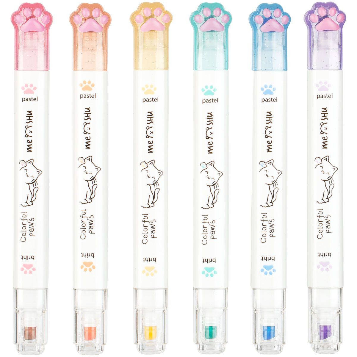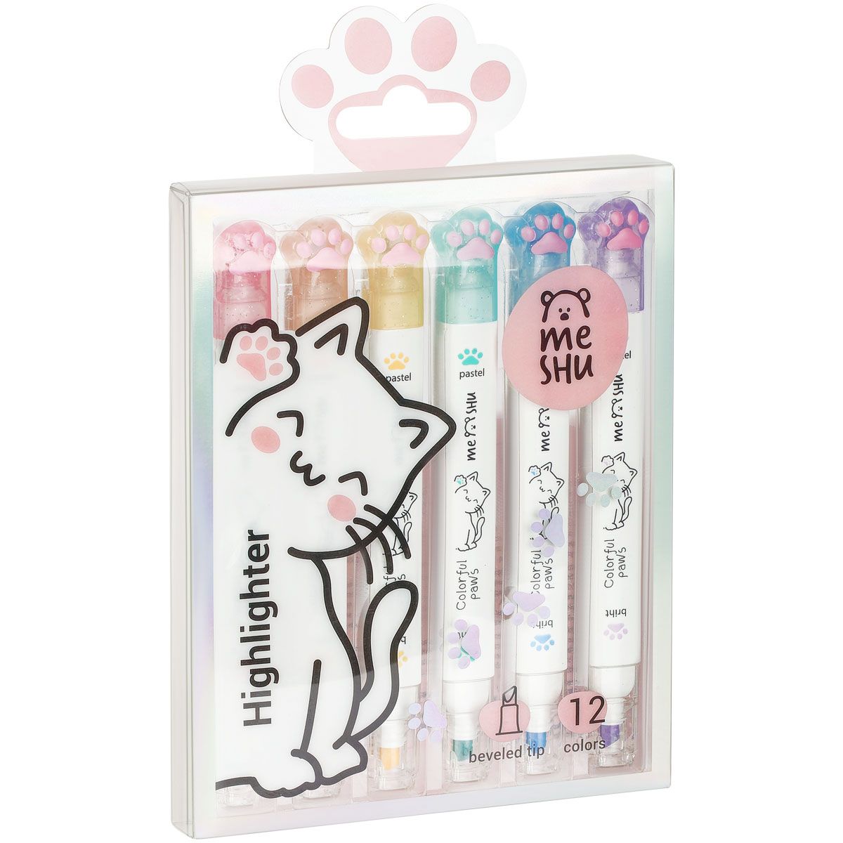 Набор текстовыделителей двусторонних MESHU "White kittens", 12цв., пастельные цвета, 1-4мм, ПВХ бокс с европодвесом