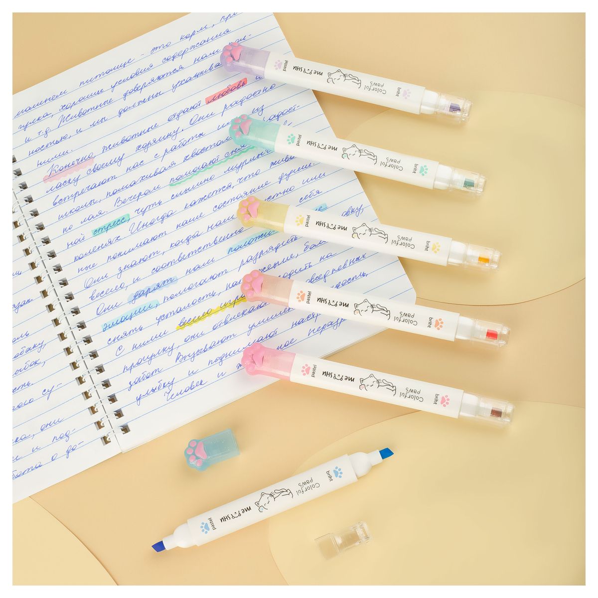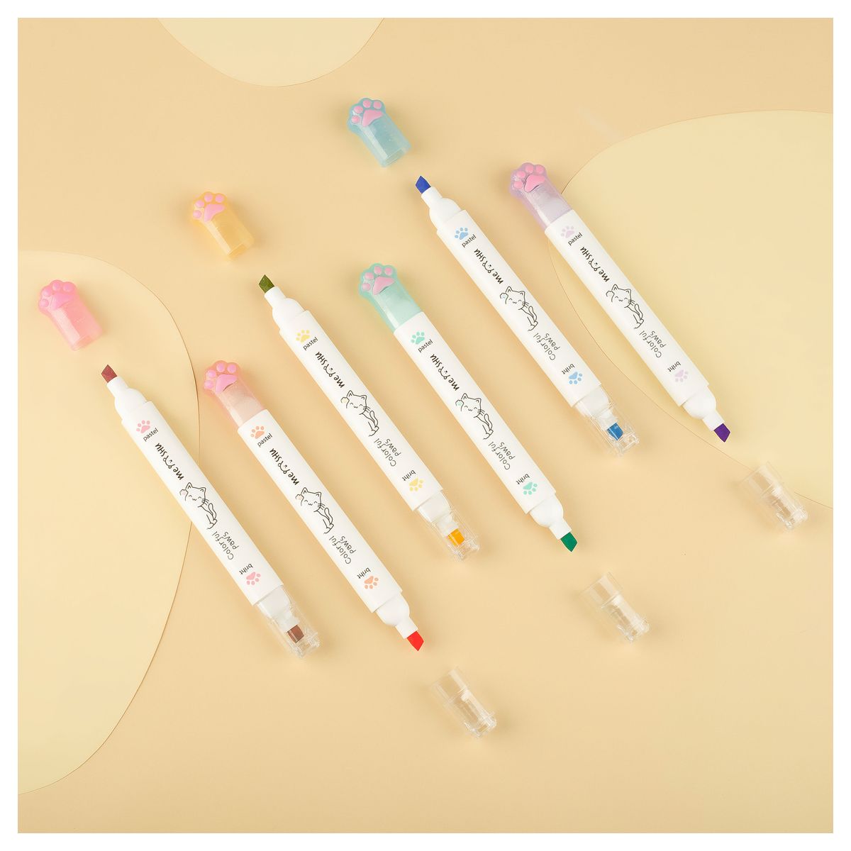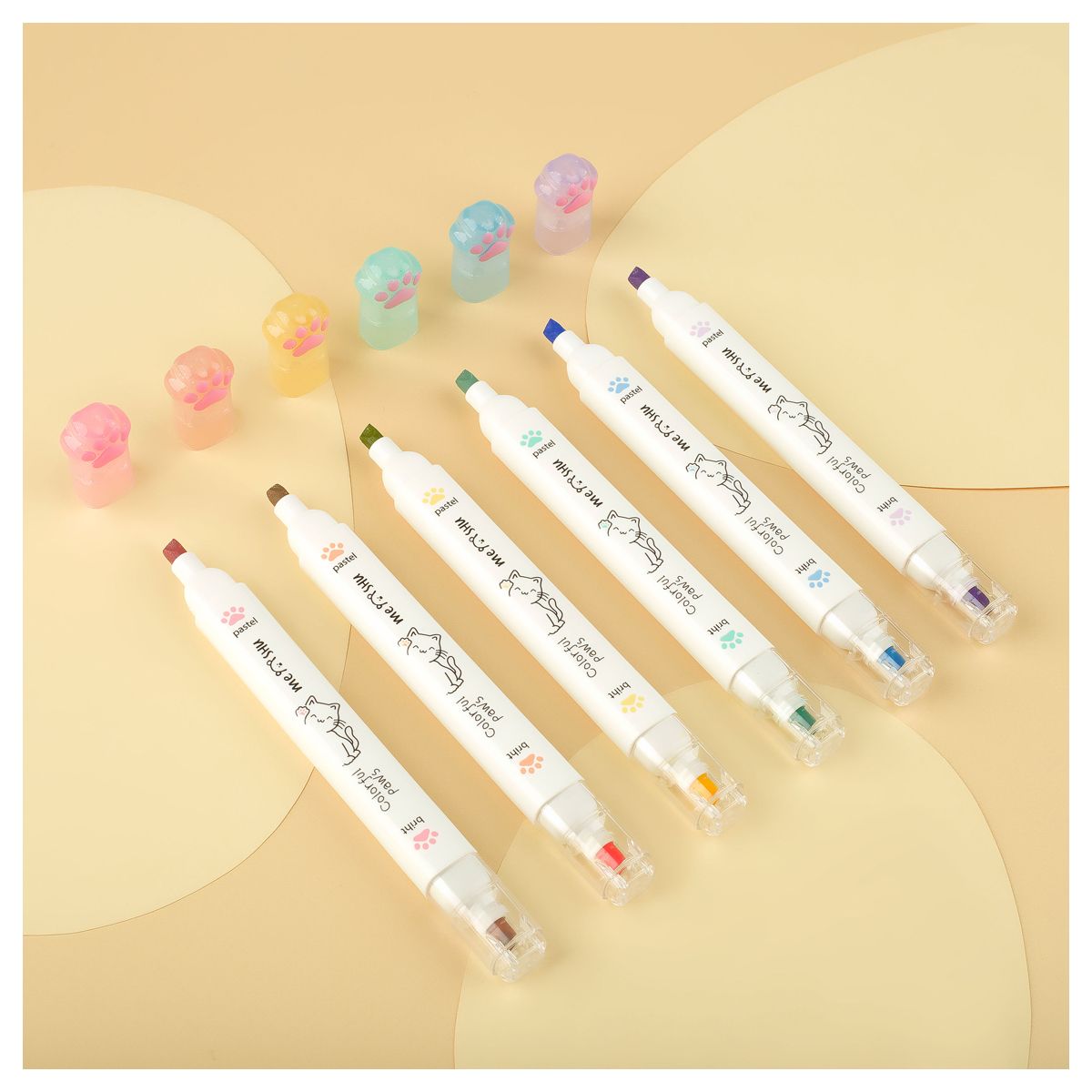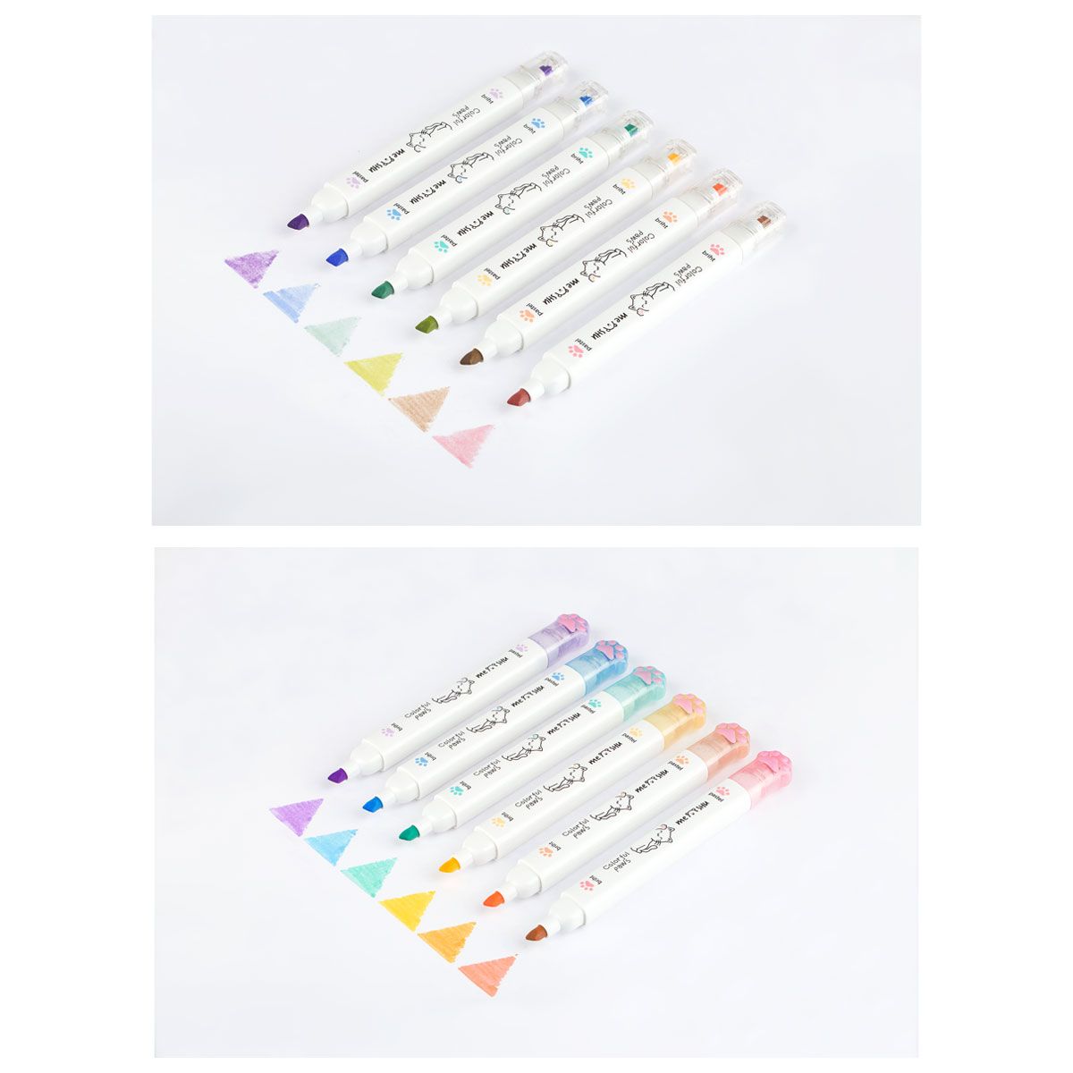 Набор текстовыделителей двусторонних MESHU "White kittens", 12цв., пастельные цвета, 1-4мм, ПВХ бокс с европодвесом