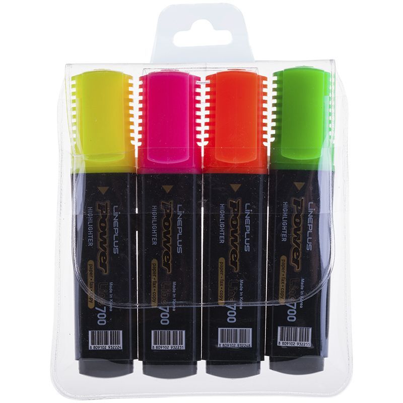 Набор текстовыделителей Line Plus "HI-700C" 04цв., 1-5мм, чехол с европодвесом