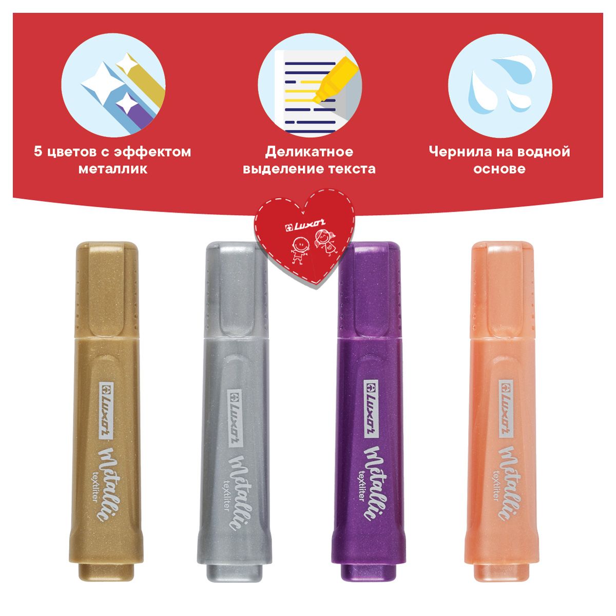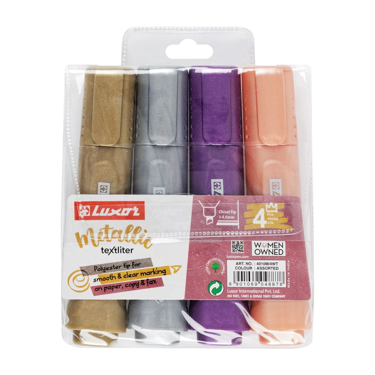 Набор текстовыделителей Luxor "Textliter Metallic" 04 цвета, 1-5мм, чехол с европодвесом.