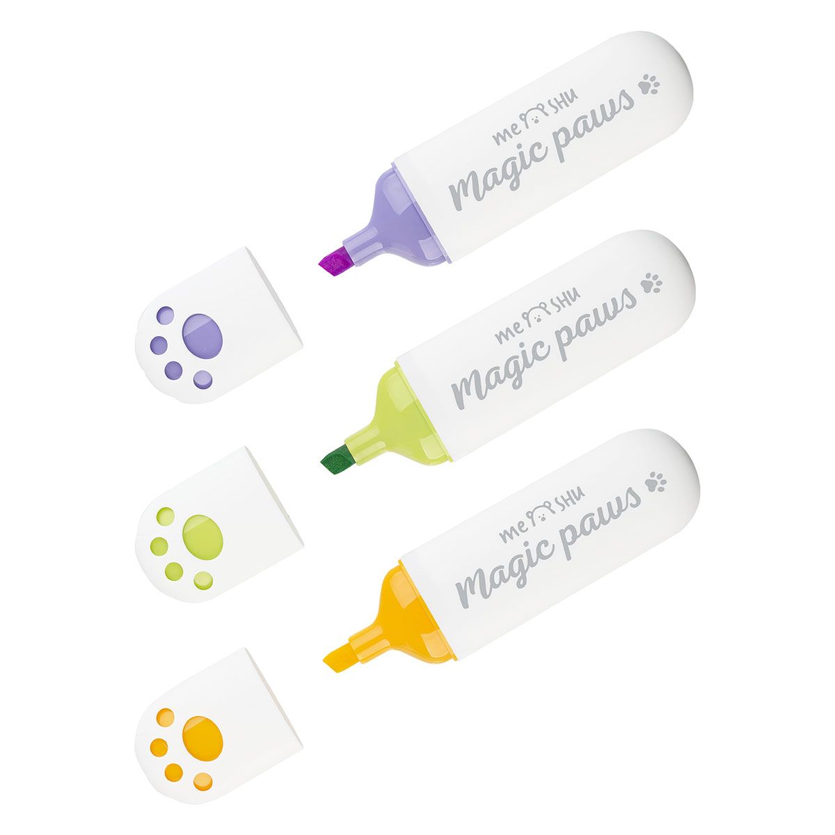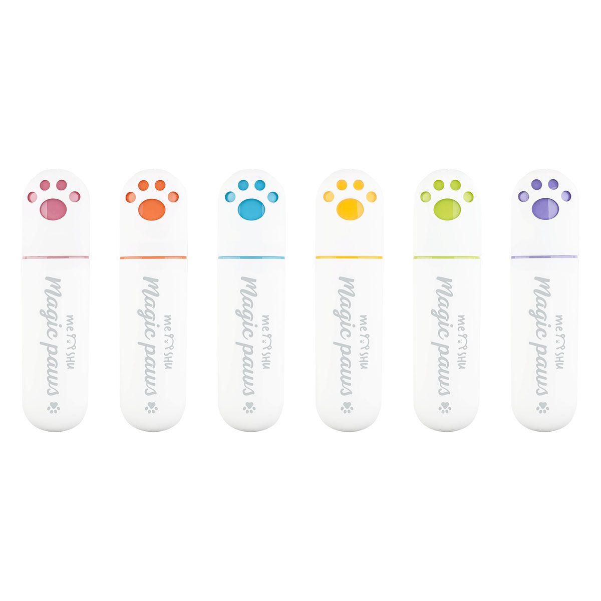 Текстовыделители с вырубкой в форме милой лапки и забавными надписями созданы поднимать настроение на работе или учёбе. Цвет лапки на колпачке соответствует цвету чернил. Текстовыделители упакованы в ПВХ-бокс с европодвесом по 6 шт.