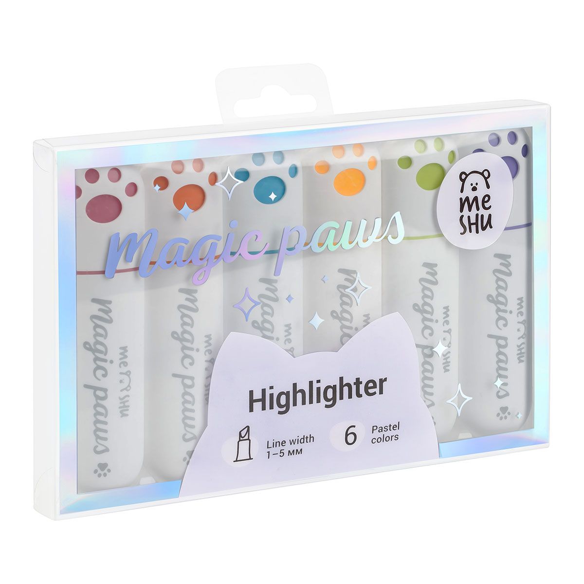 Набор текстовыделителей MESHU "Cute Paws" 06цв., пастельные цвета, 1-5мм, ПВХ бокс с европодвесом