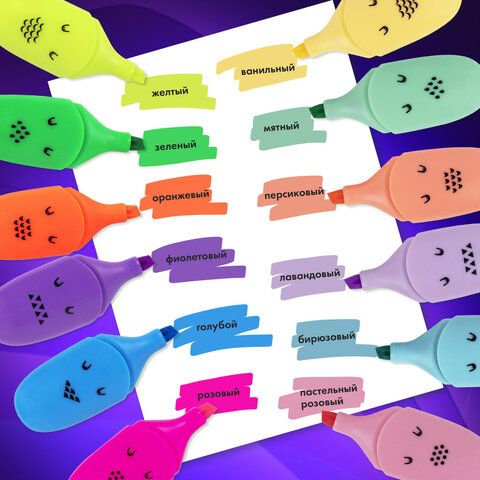 Набор текстовыделителей мини 12 ЦВЕТОВ BRAUBERG KIDS "CUTE CATS", линия 1-5 мм, 152437