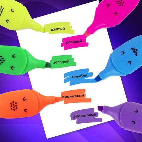 Набор текстовыделителей мини 6 ЦВЕТОВ BRAUBERG KIDS "CUTE CATS NEON", линия 1-5 мм, 152435