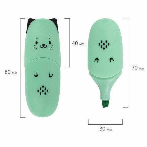Набор текстовыделителей мини 6 ЦВЕТОВ BRAUBERG KIDS "CUTE CATS PASTEL", линия 1-5 мм, 152436