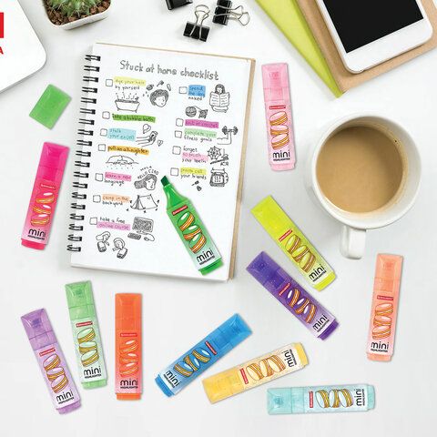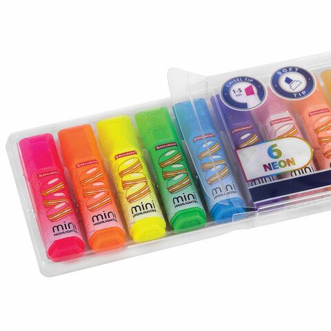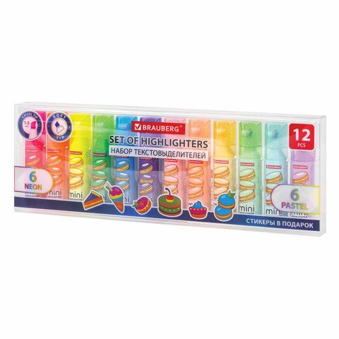 Набор текстовыделителей мини с принтами, 12 ЦВЕТОВ, BRAUBERG, 6 неоновых цветов + 6 пастельных цветов, линия 1-5 мм, 152537