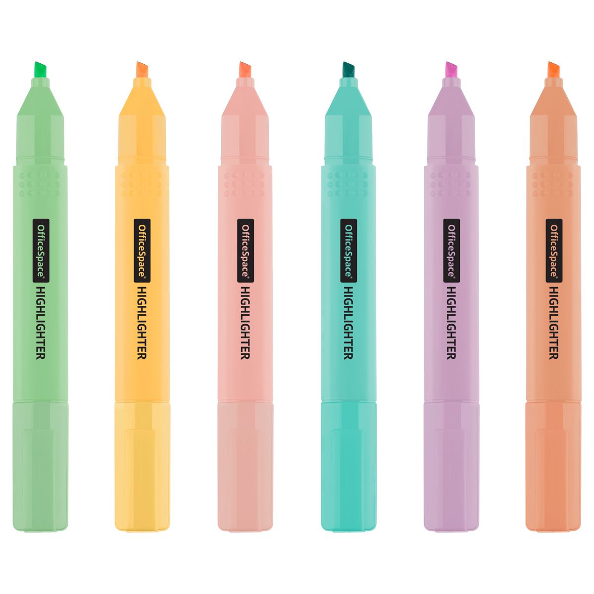 Набор текстовыделителей OfficeSpace 06цв., пастельные, 1-4мм, чехол с европодвесом