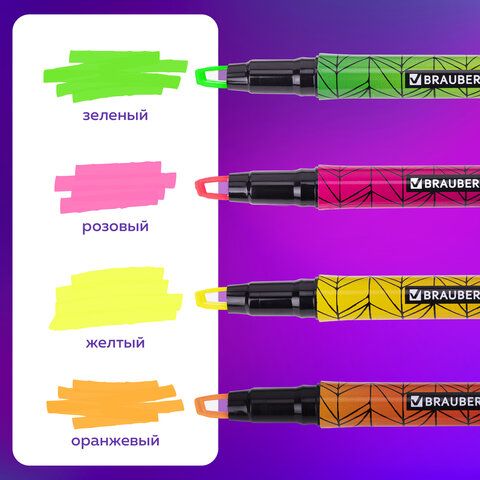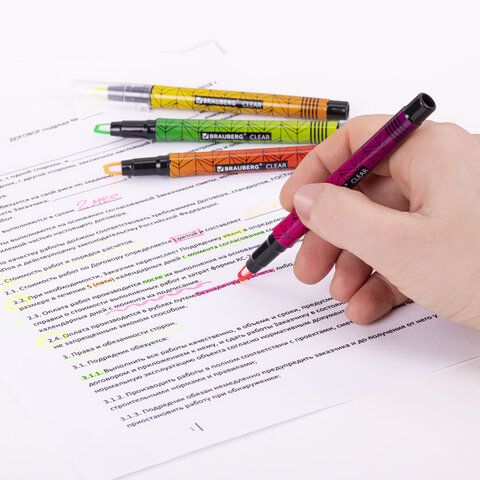 Набор текстовыделителей с прозрачным наконечником 4 ЦВЕТА, BRAUBERG "Clear", линия 1-5 мм, 152426
