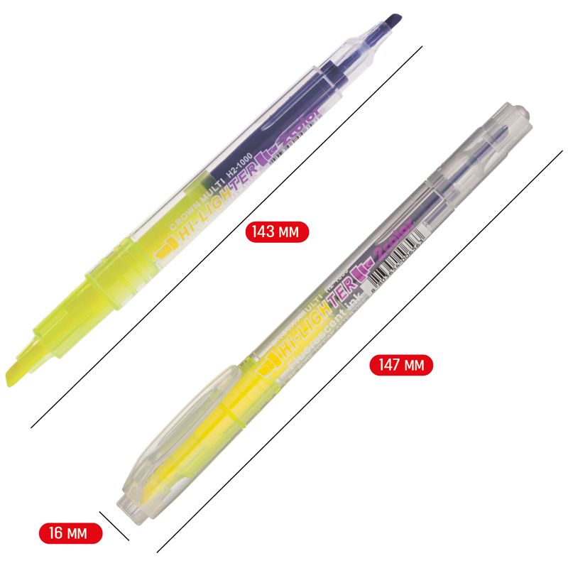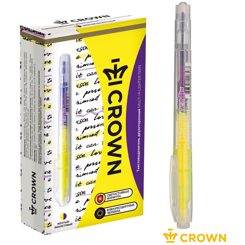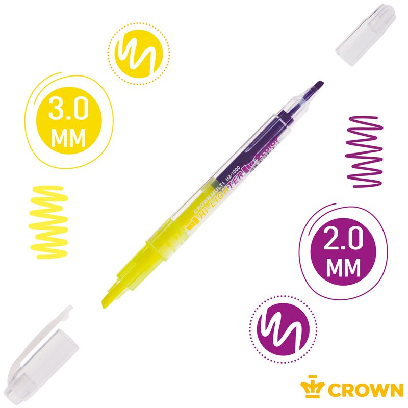 Текстовыделитель двухсторонний Crown "Multi Hi-Lighter Twin" желтый/фиолетовый, 3/2мм