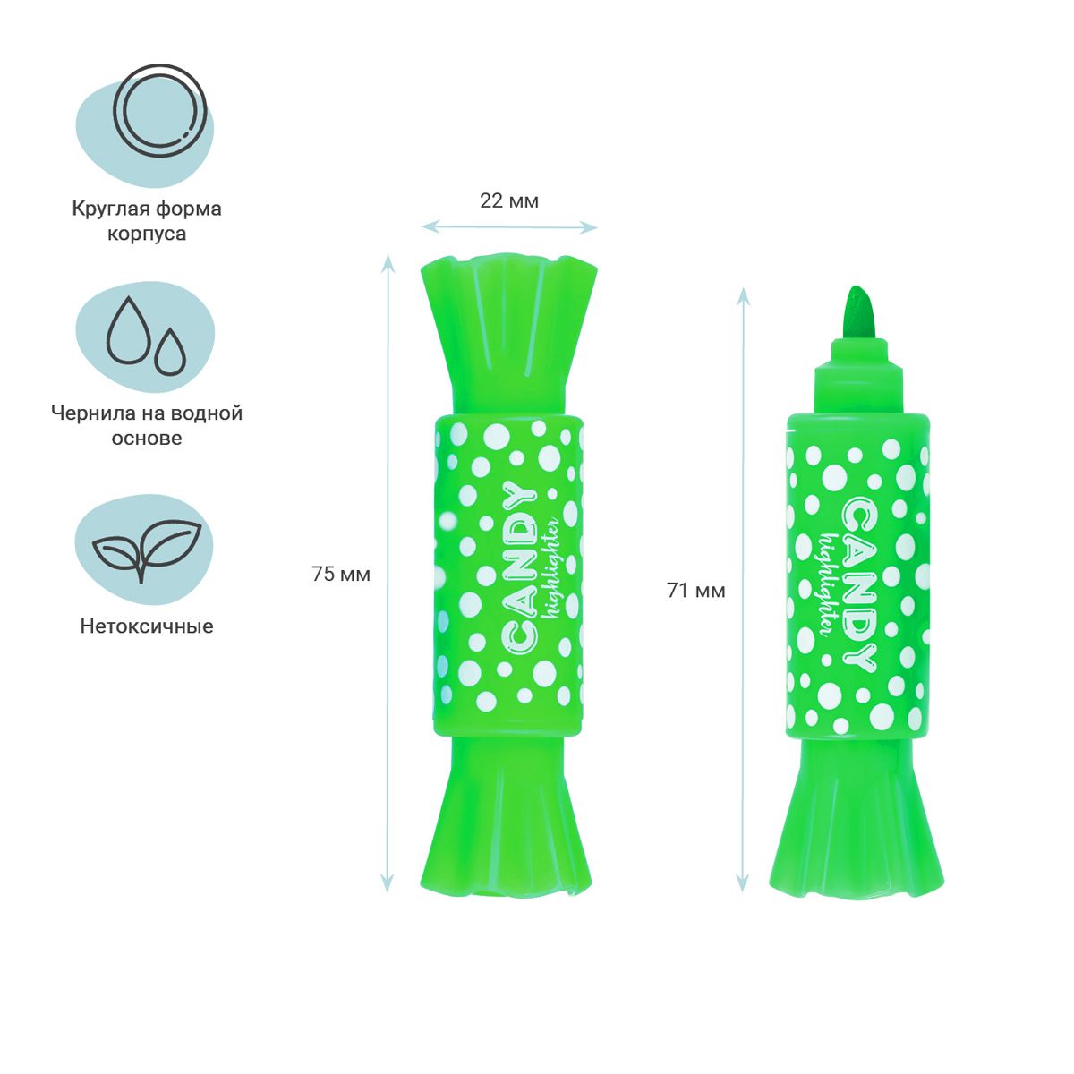Двусторонний текстовыделитель MESHU Candy на водной основе представлен со скошенным пишущим узлом с толщиной линии 4 мм и пулевидным – 2 мм. Компактный размер 17,5 мм идеально подходит для пенала. Цвет колпачка и корпуса соответствует цвету чернил. Текстовыделители упакованы в ПВХ-банку по 30 штук.