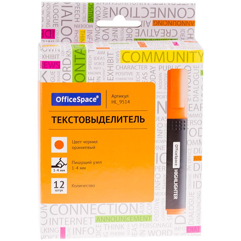 Текстовыделитель OfficeSpace оранжевый, 1-4мм