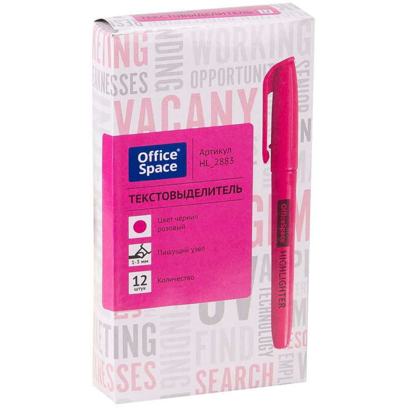 Текстовыделитель OfficeSpace розовый, 1-3мм