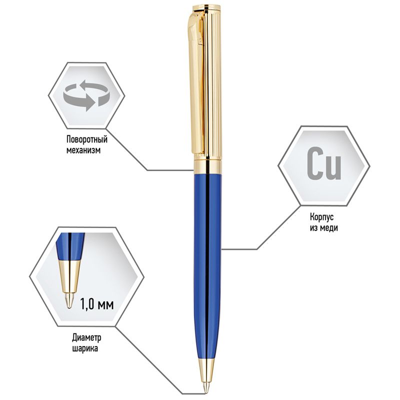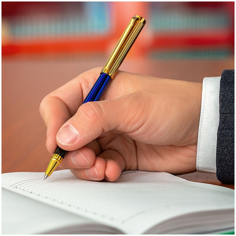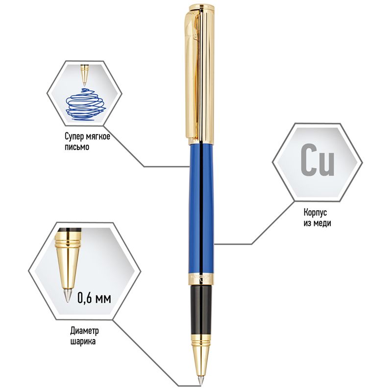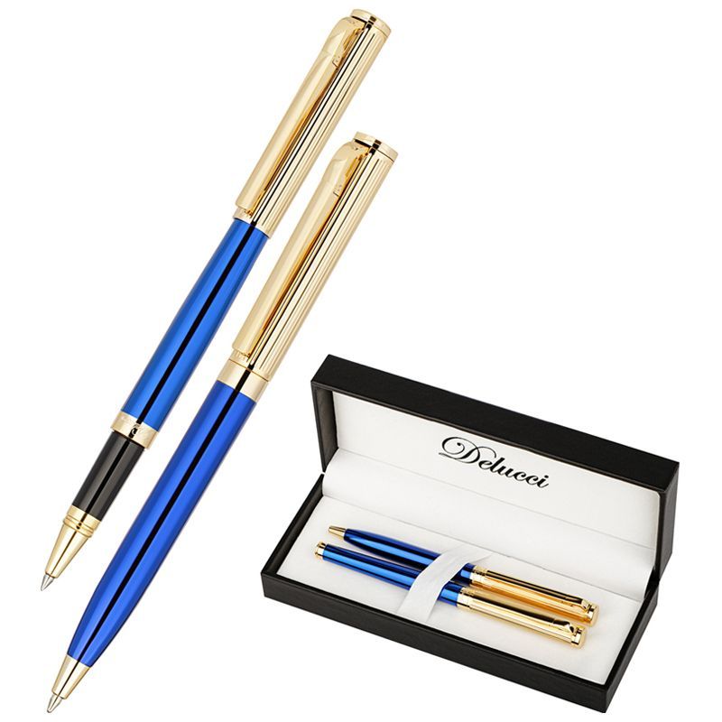 Набор Delucci "Azzurro": ручка шарик., 1мм и ручка-роллер, 0,6мм, синие, корпус син/зол., подарочная упаковка