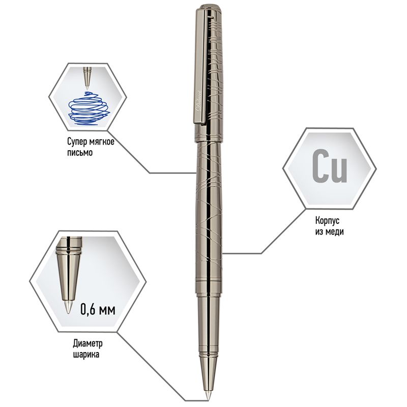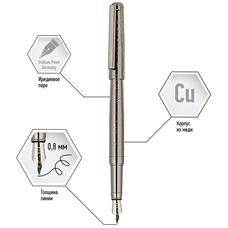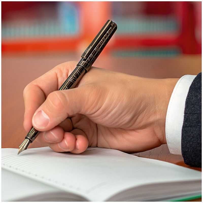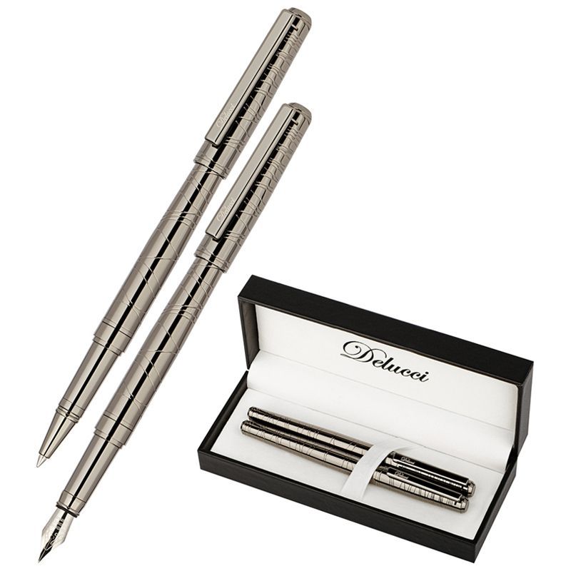 Набор Delucci "Mistico": ручка перьевая 0,8мм и ручка-роллер 0,6мм, черные, оруж. металл, подарочная упаковка