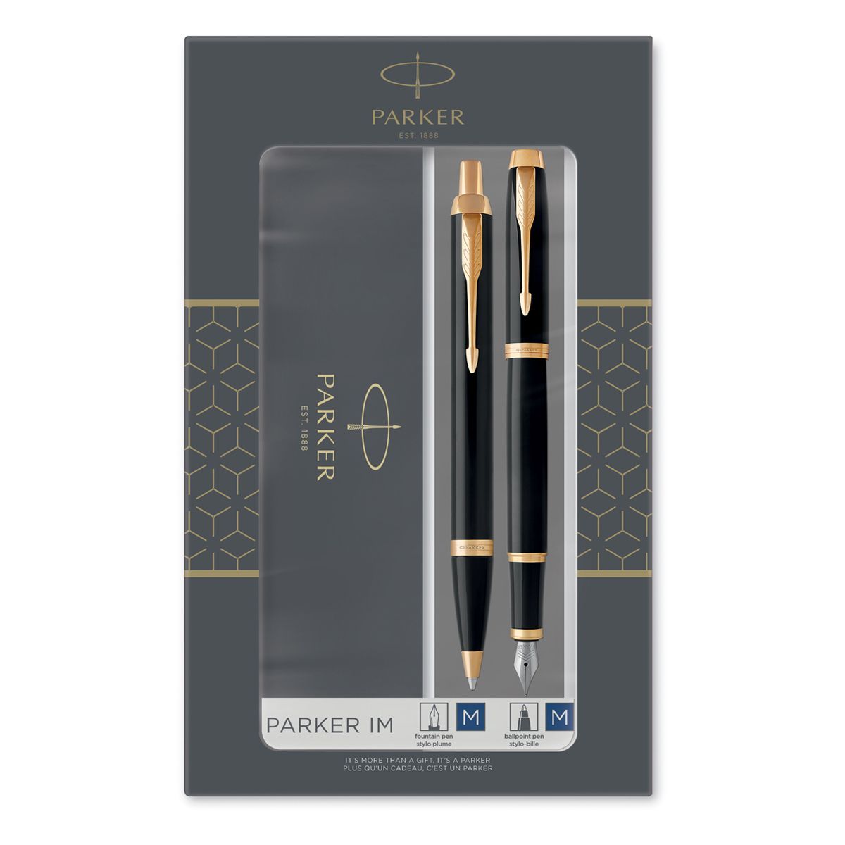 Набор Parker "IM Black GT": ручка шариковая, 1,0мм и ручка перьевая, 1,0мм, подарочная упаковка
