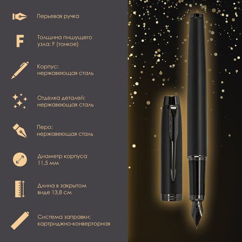 - Parker "IM Professionals Monochrome Champagne" — стильная модель с шириной линии 0,8 мм. Идеально подходит как подарок руководителю или деловому партнёру.