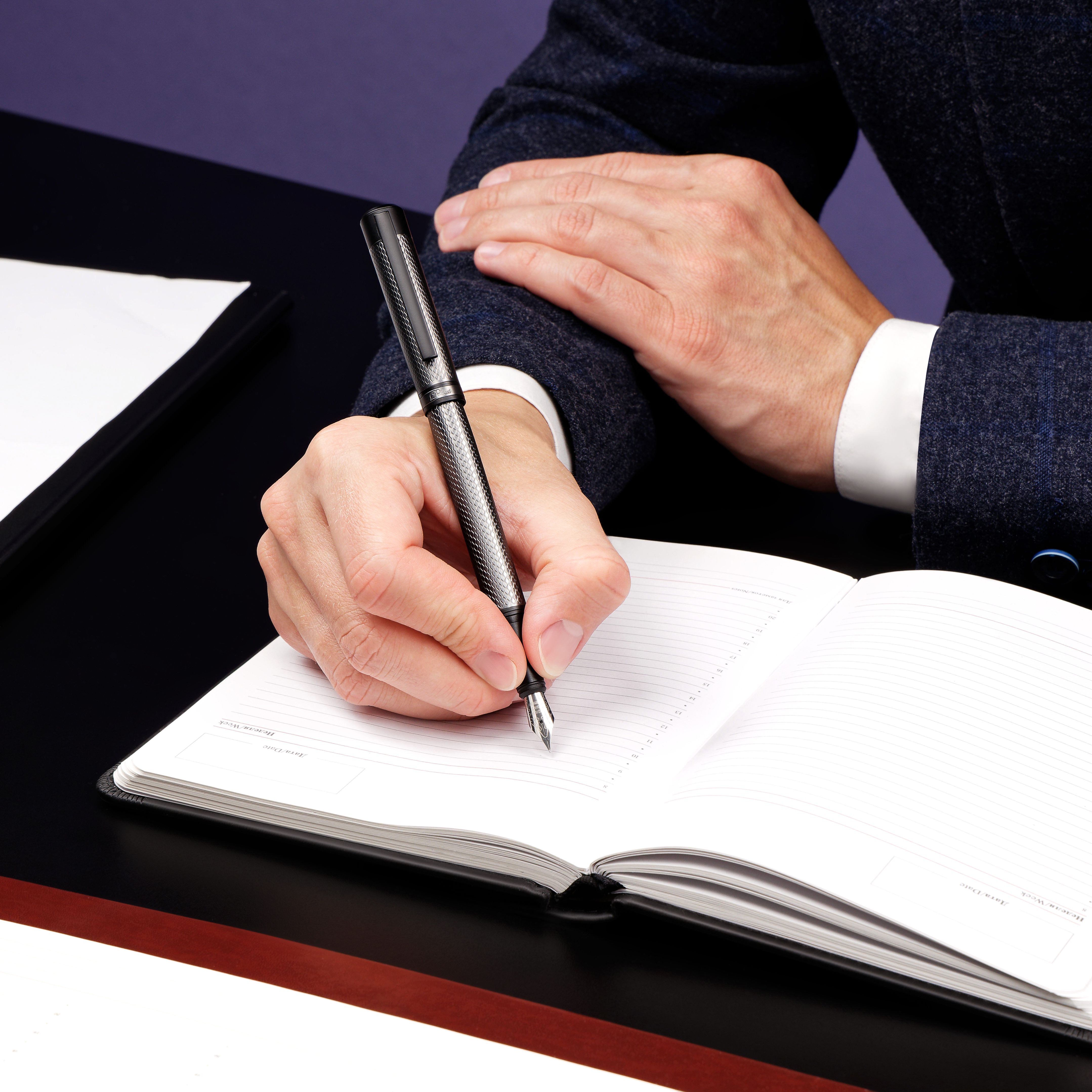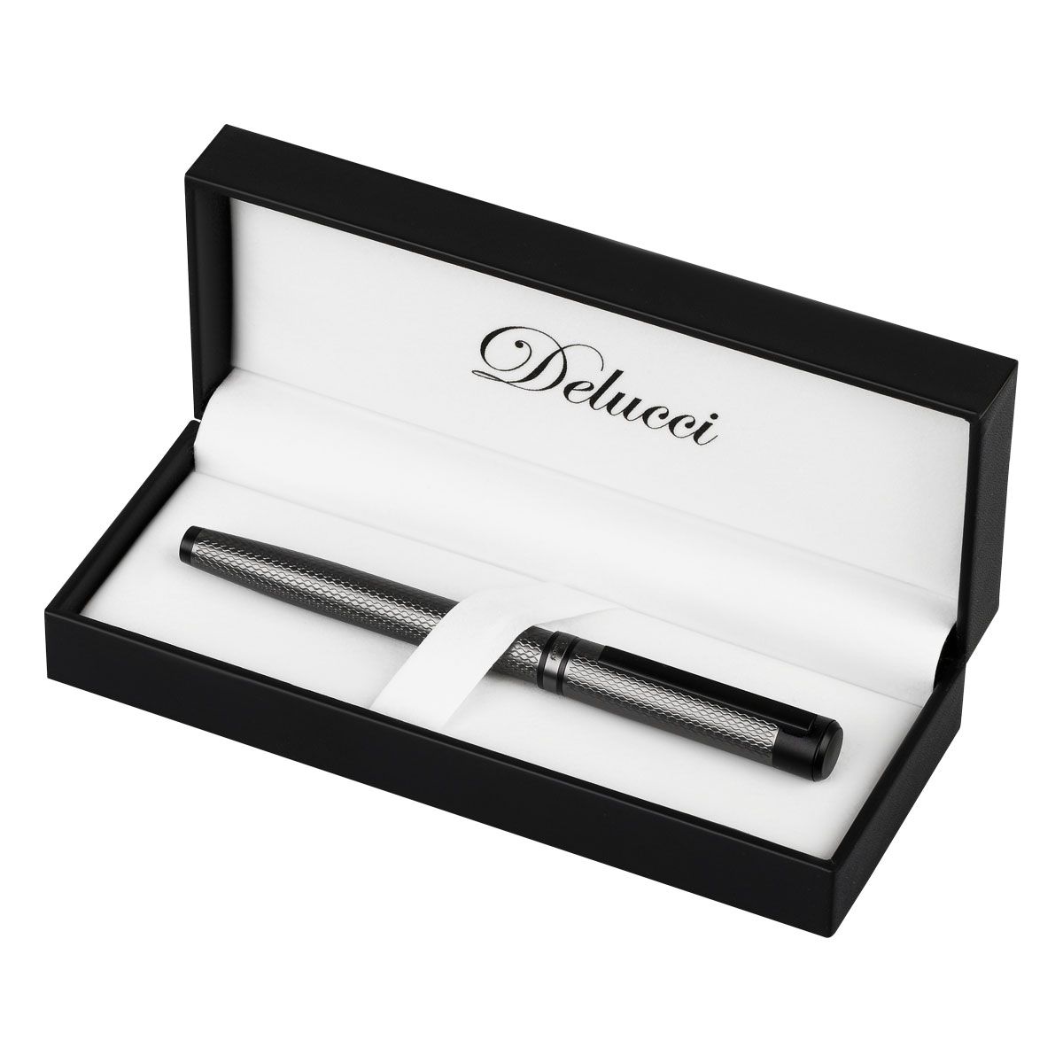 Ручка перьевая Delucci "Antica" черная, 0,8мм, корпус графит/черный, подарочный футляр