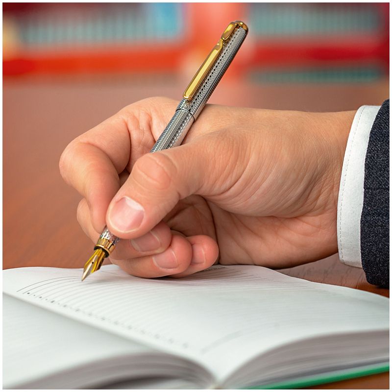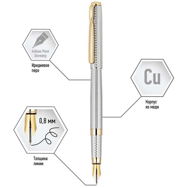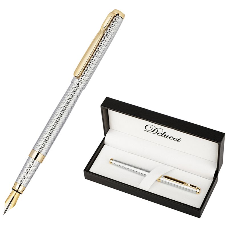 Ручка перьевая Delucci "Celeste" черная, 0,8мм, цвет корпуса - серебро, подарочный футляр