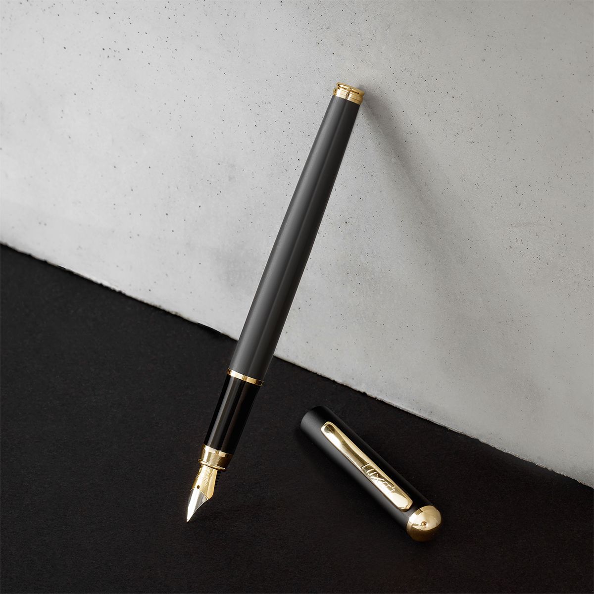 Ручка перьевая Luxor "Marvel" синяя, 0,8мм, корпус черный/золото, футляр