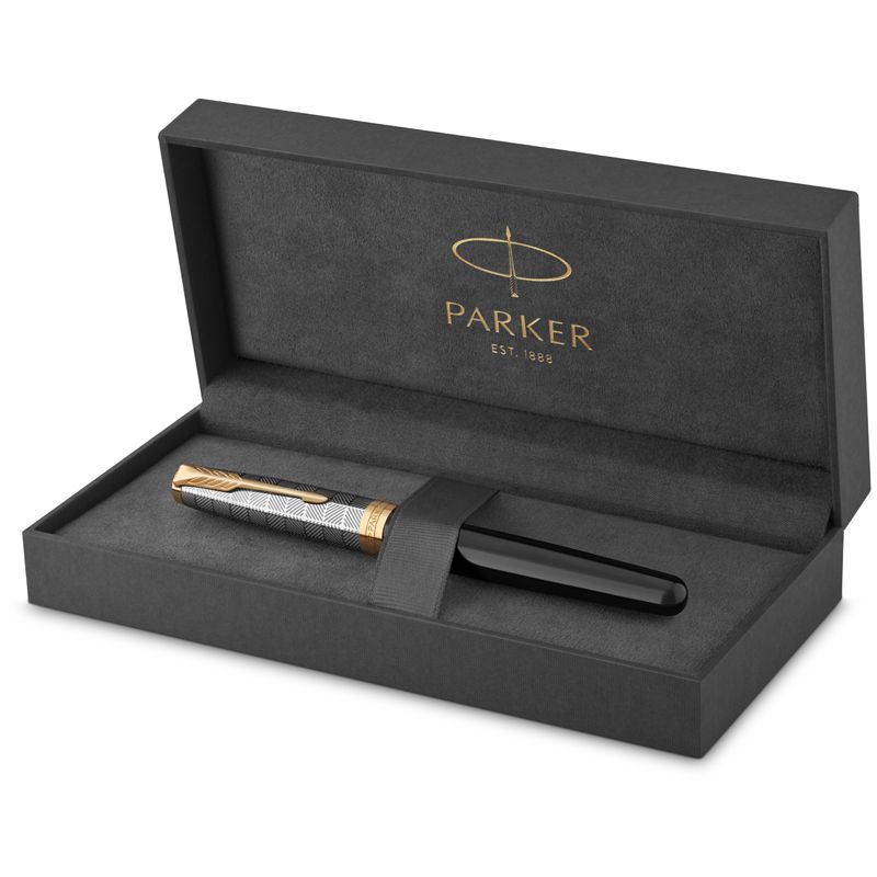 Ручка перьевая Parker "Sonnet Premium Metal&Black GT" черная, 0,8мм, подарочная упаковка