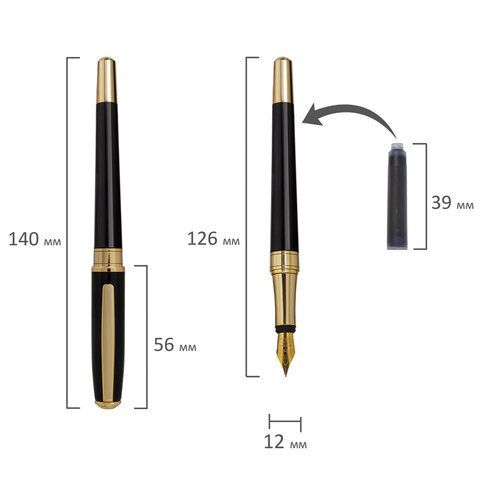 Ручка подарочная перьевая GALANT "LUDUS", корпус черный, детали золотистые, узел 0,8 мм, 143529