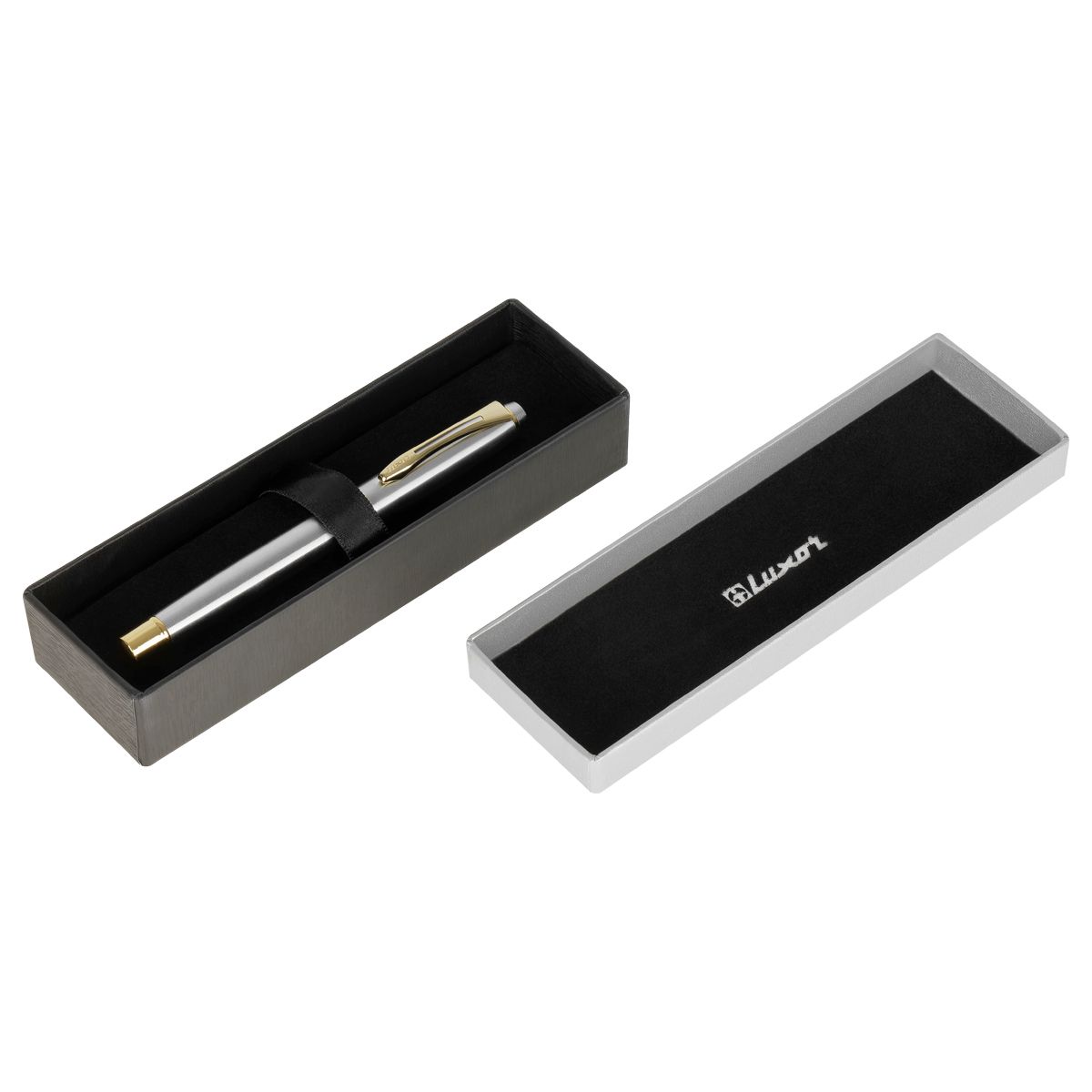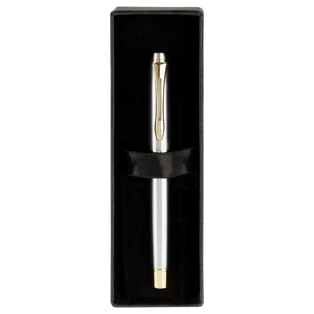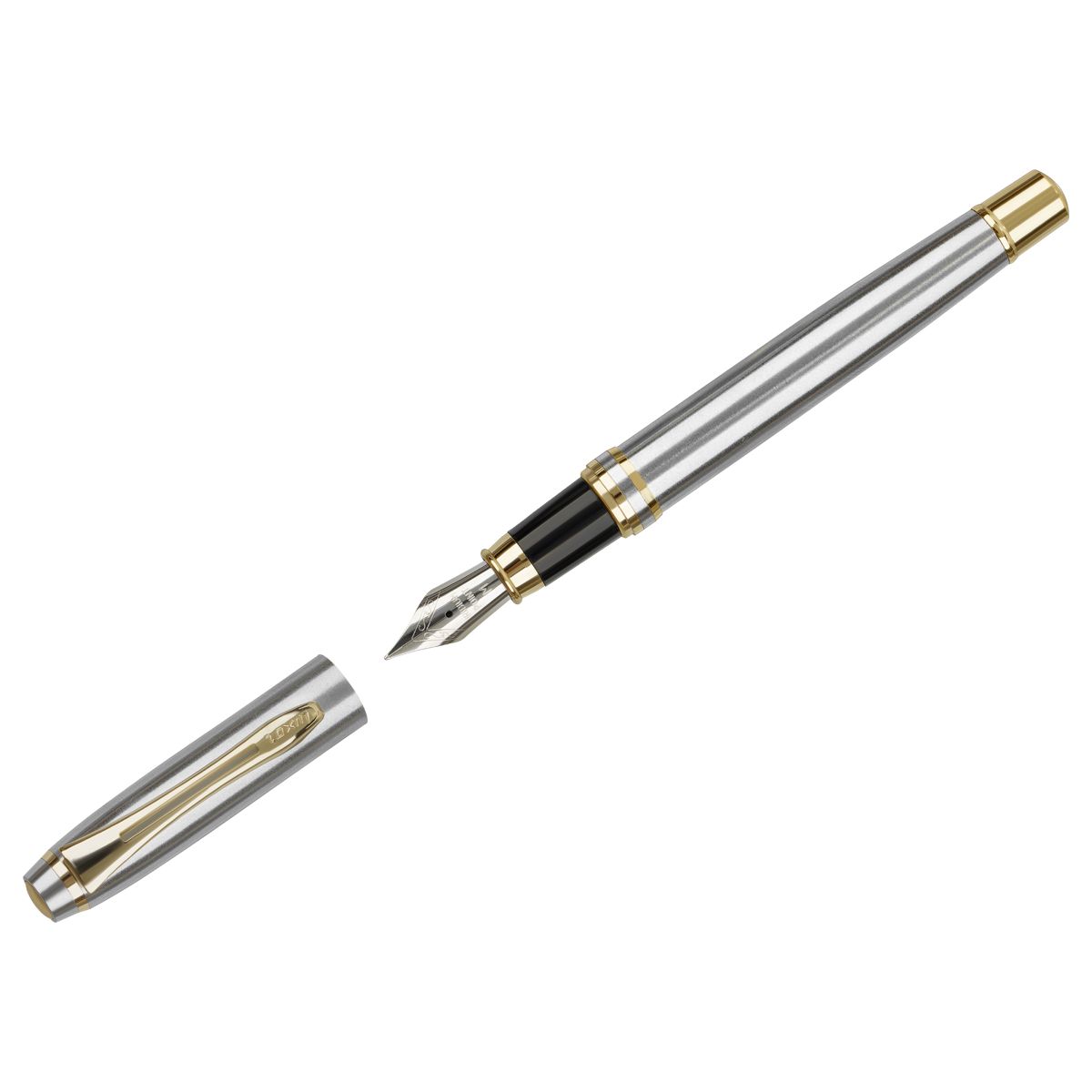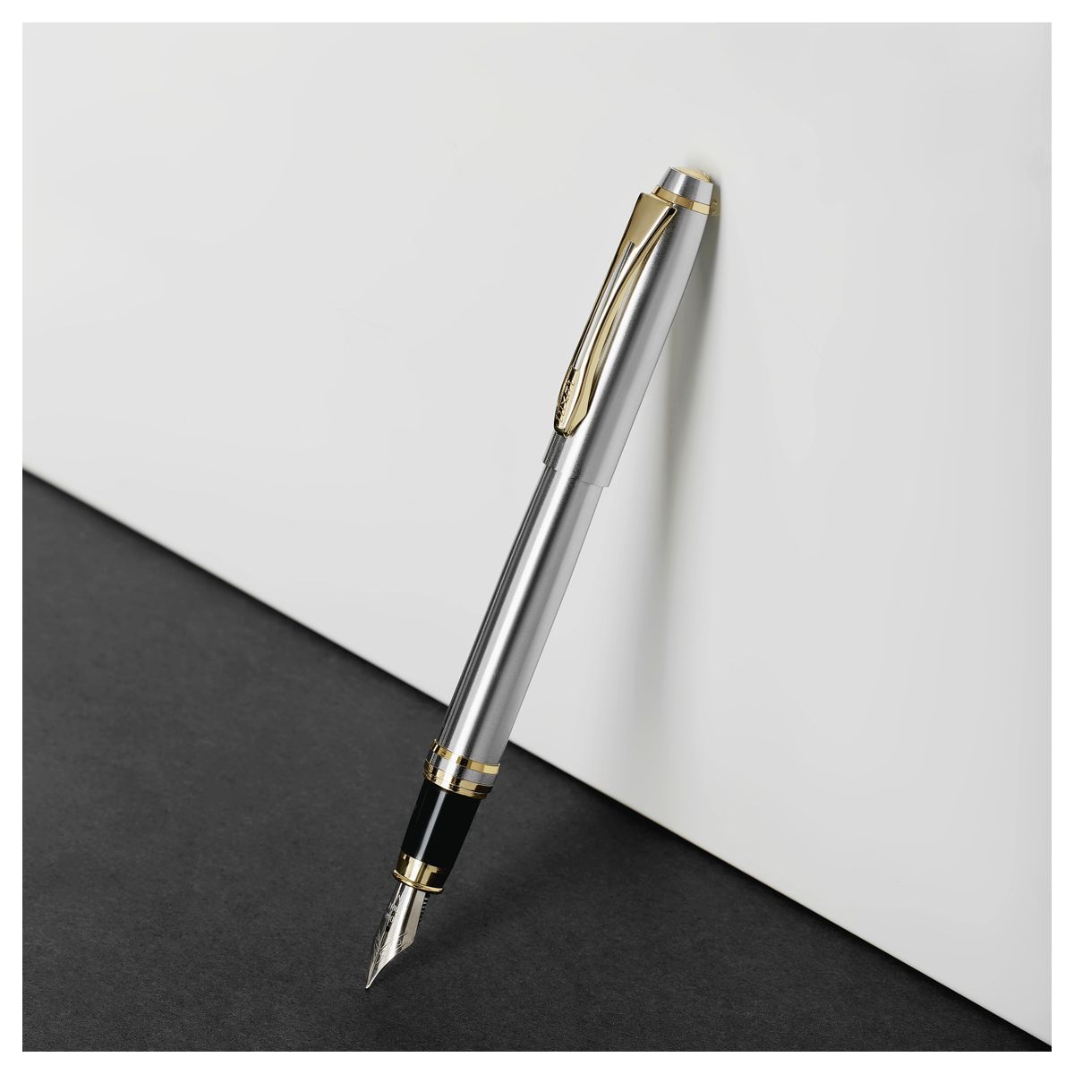 Ручка перьевая Luxor "Trident" синяя, 0,8мм, корпус серебро/золото, футляр