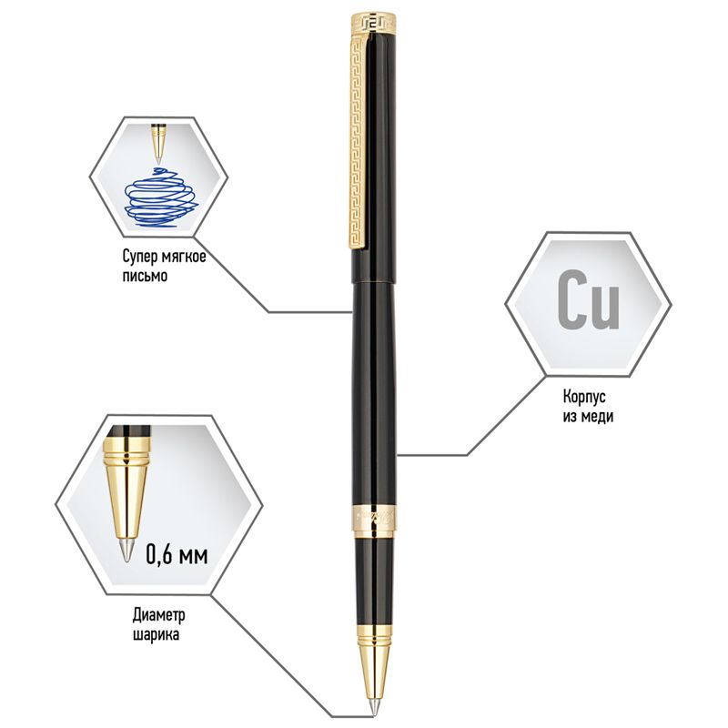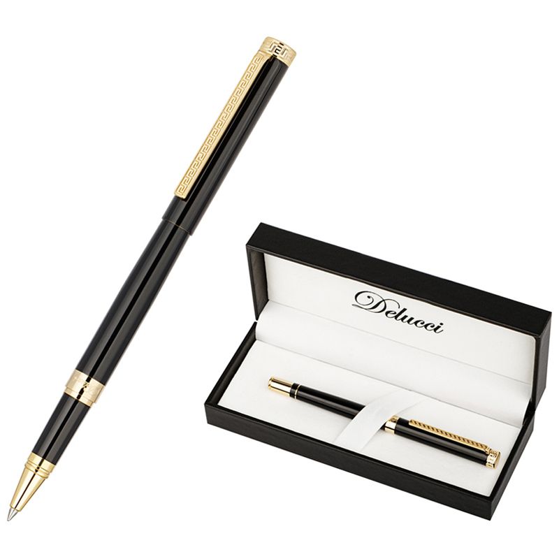 Ручка-роллер Delucci "Classico" черная, 0,6мм, корпус черный/золото, подарочная упаковка