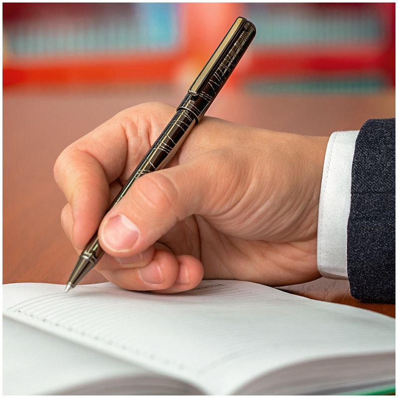 Ручка-роллер Delucci "Mistico" черная, 0,6мм, корпус оружейный металл, подарочная упаковка
