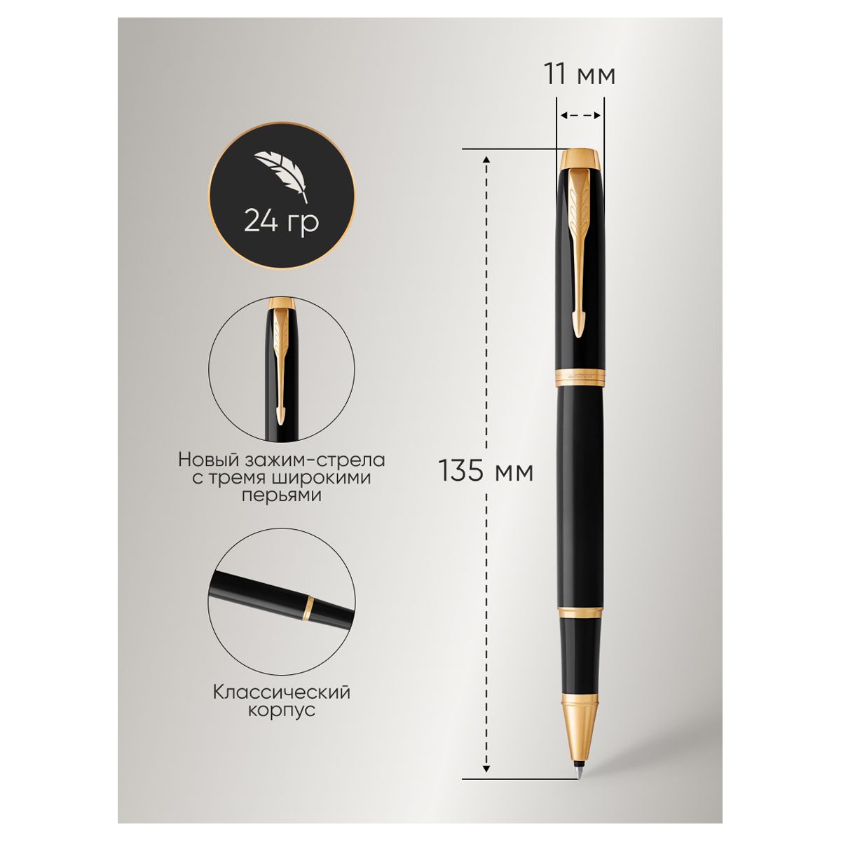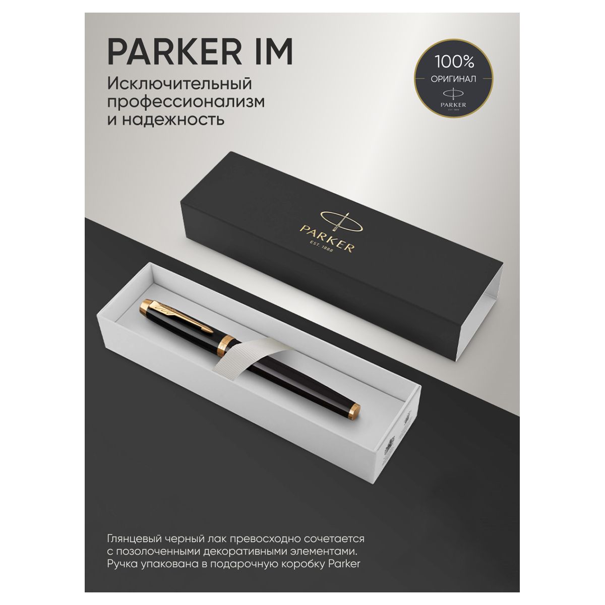 Ручка-роллер Parker "IM Black GT" черная, 0,8мм, подарочная упаковка