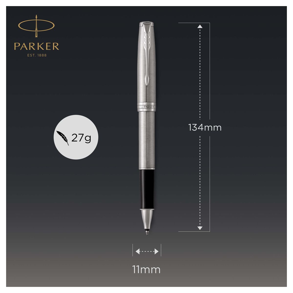 Ручка-роллер Parker "Sonnet Stainless Steel CT" черная, 0,8мм, подарочная упаковка