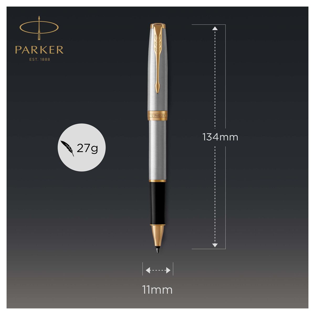 Ручка-роллер Parker "Sonnet Stainless Steel GT" черная, 0,8мм, подарочная упаковка