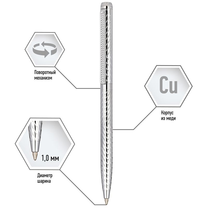 Ручка шариковая Delucci "Argento" синяя, 1,0мм, корпус серебро, поворотн., подарочная упаковка