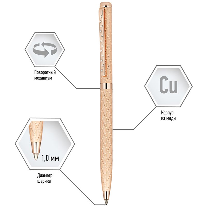 Ручка шариковая Delucci "Aurora" синяя, 1,0мм, цвет корпуса - золото, поворот., подарочная упаковка