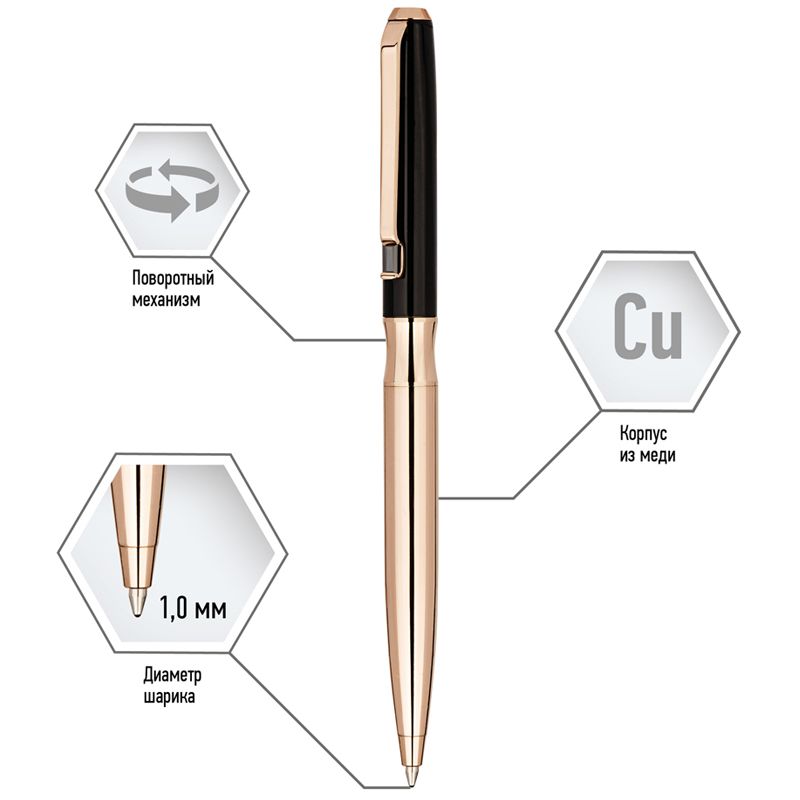 Ручка шариковая Delucci "Evento" синяя, 1,0мм, цвет корпуса - черный/золото, поворот., подарочная упаковка