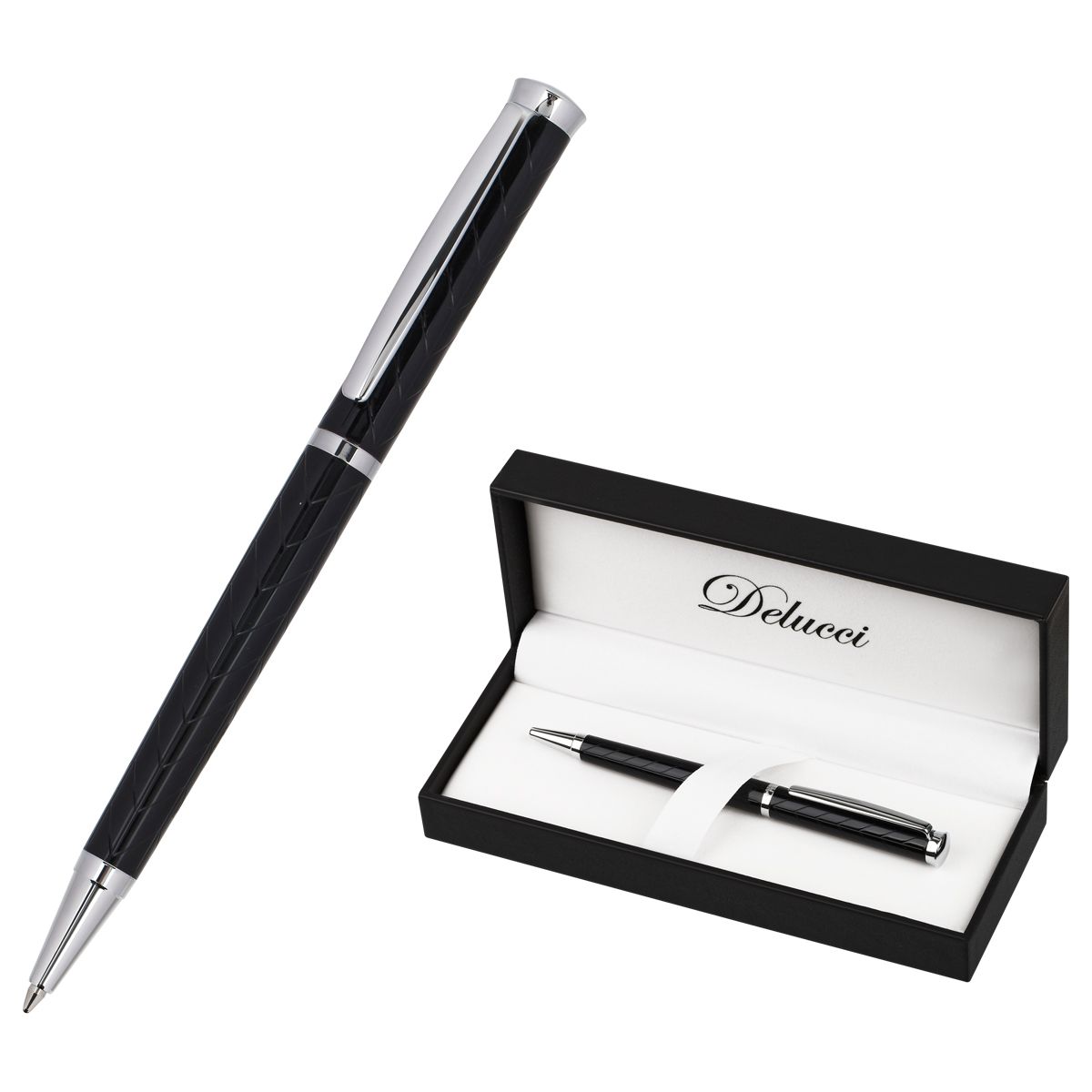 Ручка шариковая Delucci "Impero" синяя, 1,0мм, корпус черный/серебро, поворотн., подарочная упаковка