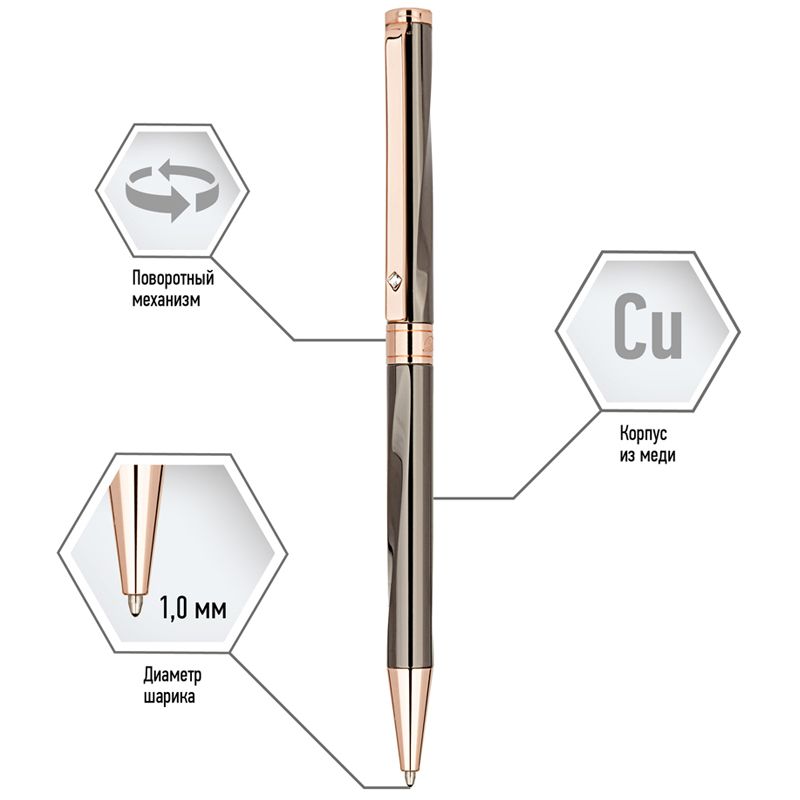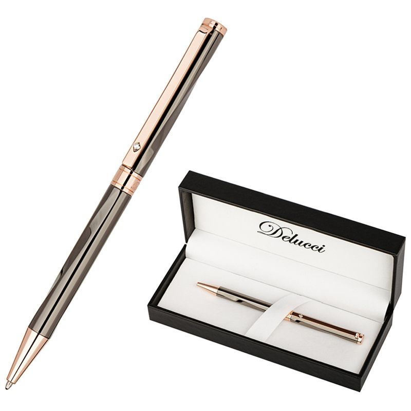 Ручка шариковая Delucci "Inno" синяя, 1,0мм, цвет корпуса - оружейный металл, поворот., подарочная упаковка