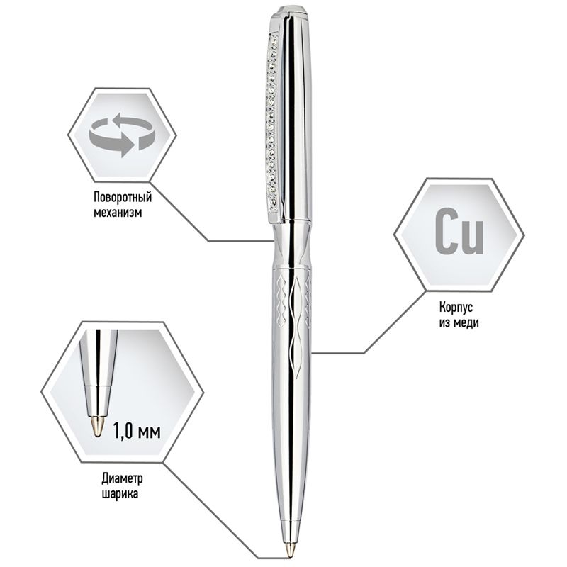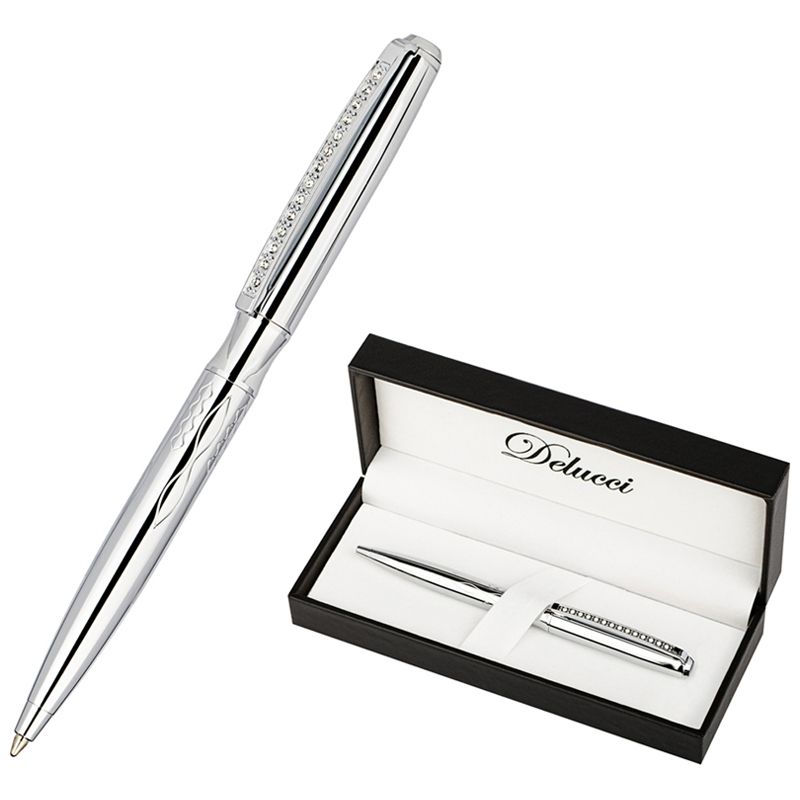 Ручка шариковая Delucci "Mare" синяя, 1,0мм, цвет корпуса - серебро, поворот., подарочная упаковка