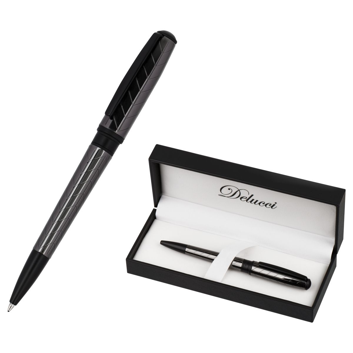Ручка шариковая Delucci "Marte" синяя, 1,0мм, корпус титан/черный, поворотн., подарочная упаковка