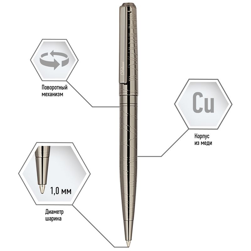 Ручка шариковая Delucci "Mistico" синяя, 1,0мм, корпус оружейный металл, поворотн., подарочная упаковка