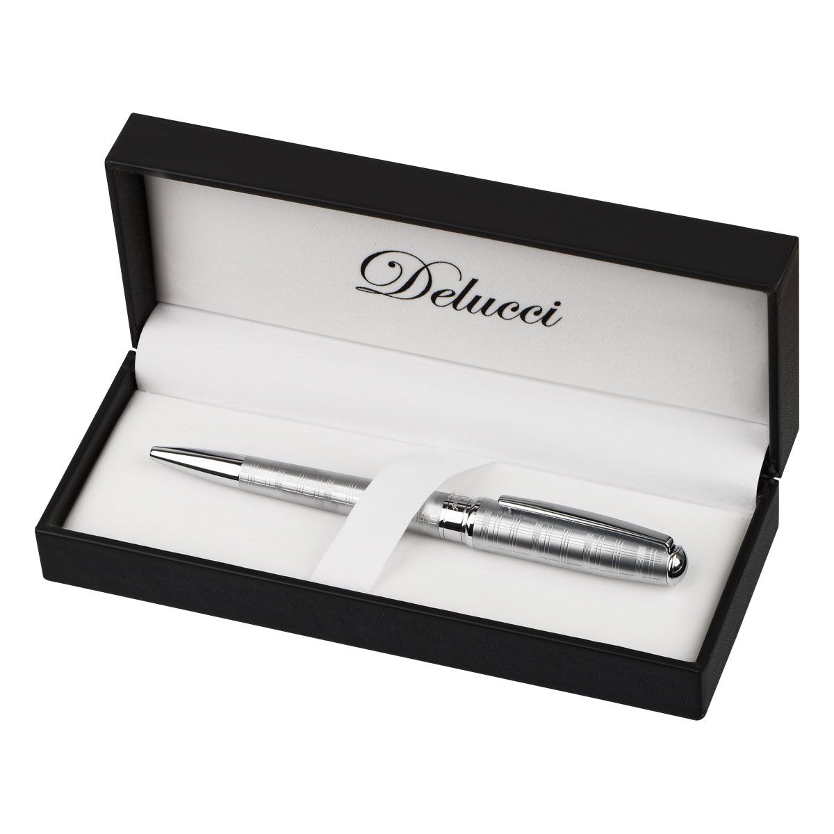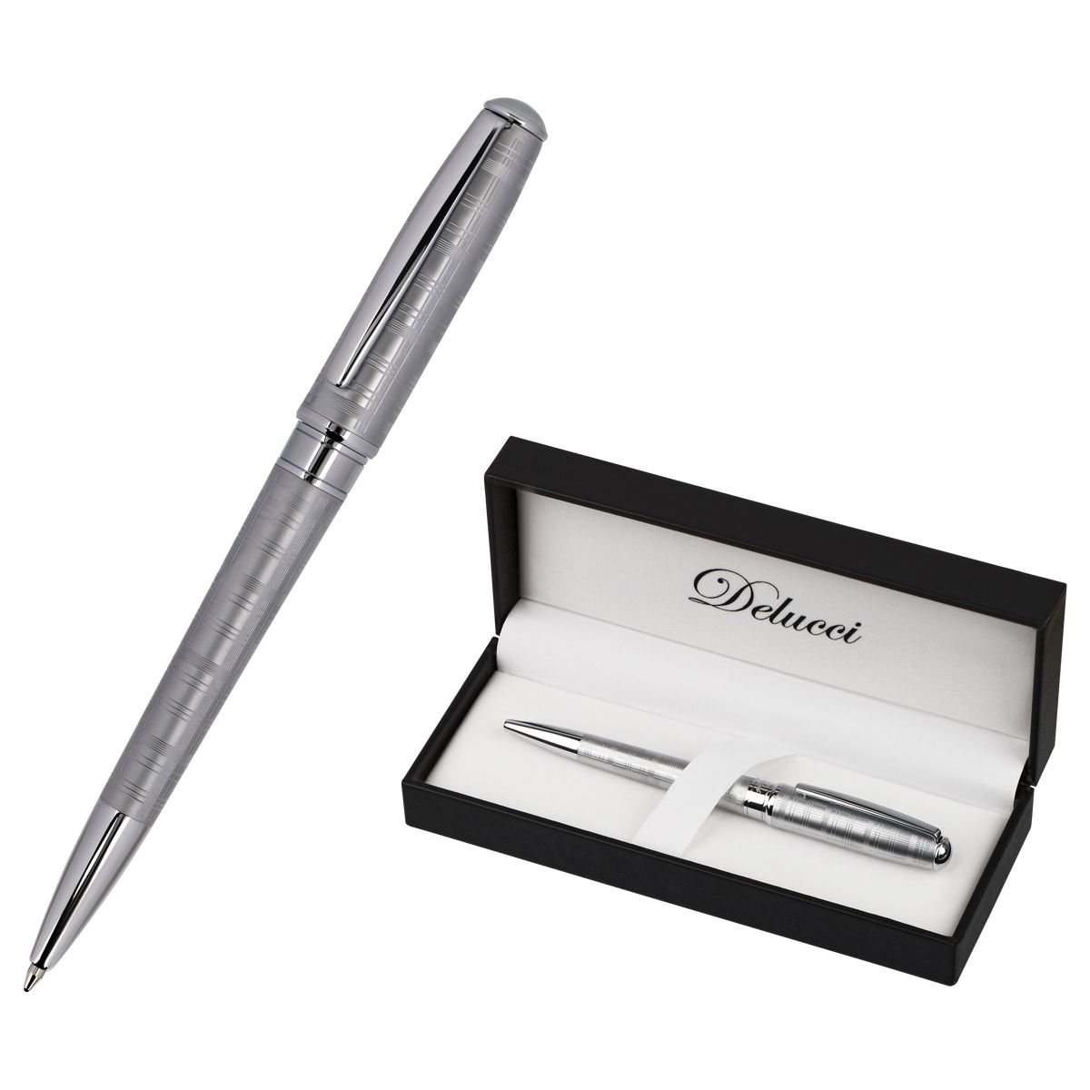 Ручка шариковая Delucci "Vetro" синяя, 1,0мм, корпус матовое серебро, поворотн., подарочная упаковка