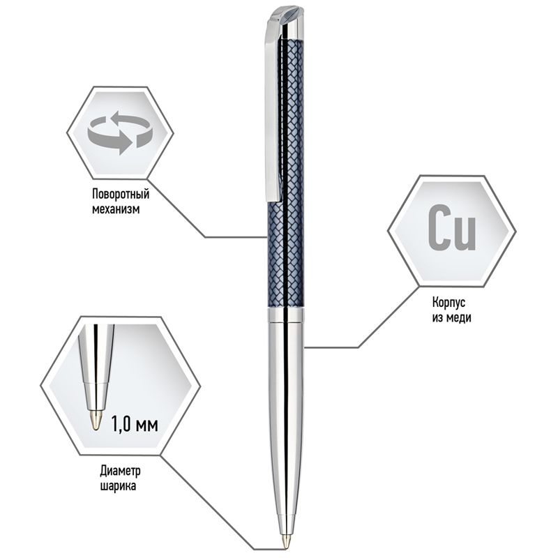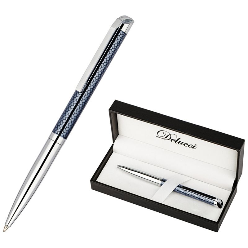 Ручка шариковая Delucci "Volare" синяя, 1,0мм, корпус серебро/серо-голубой, поворот., подарочная упаковка