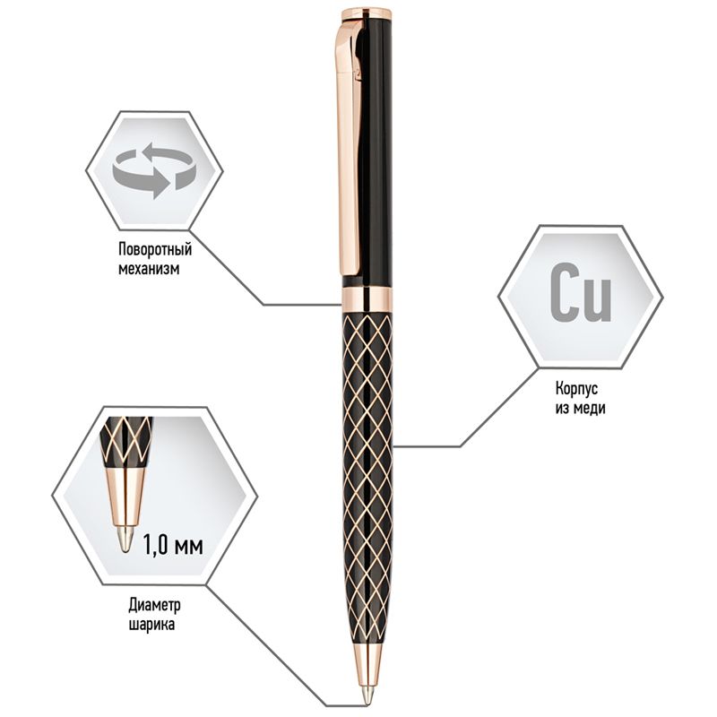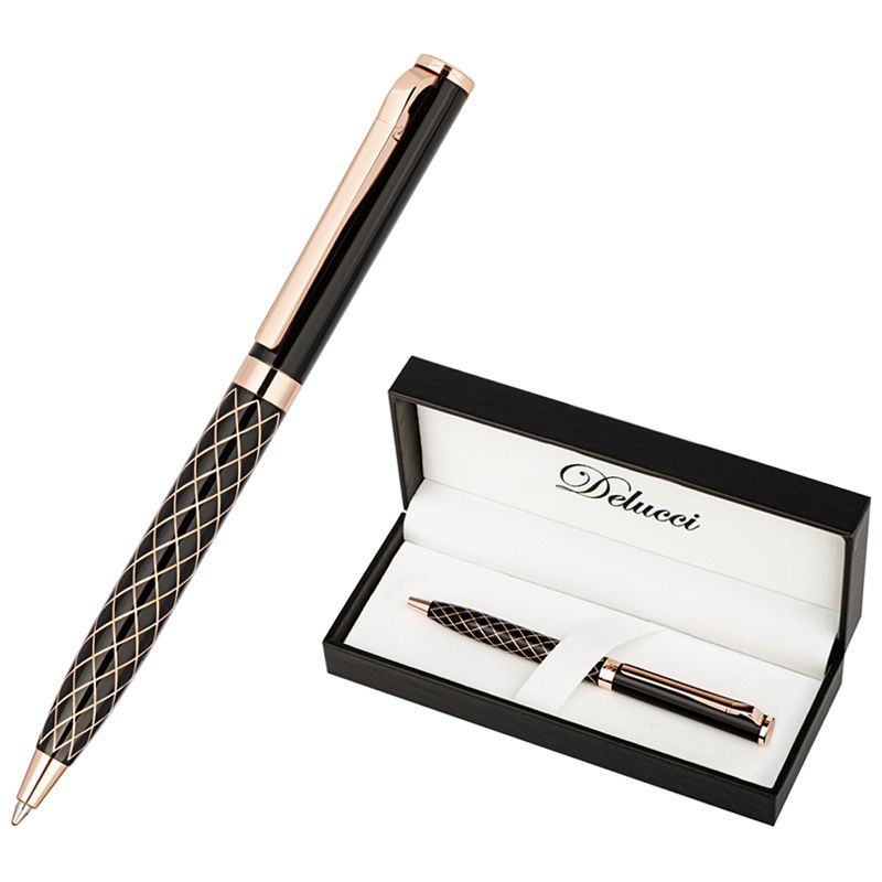 Ручка шариковая Delucci "Volta" синяя, 1,0мм, цвет корпуса - черный, поворот., подарочная упаковка