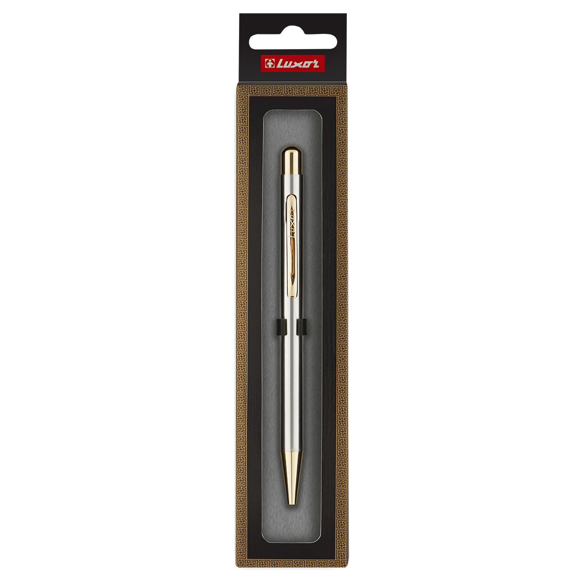 Ручка шариковая Luxor "Nova" синяя, 1,0мм, корпус хром/золото, кнопочный механизм, футляр