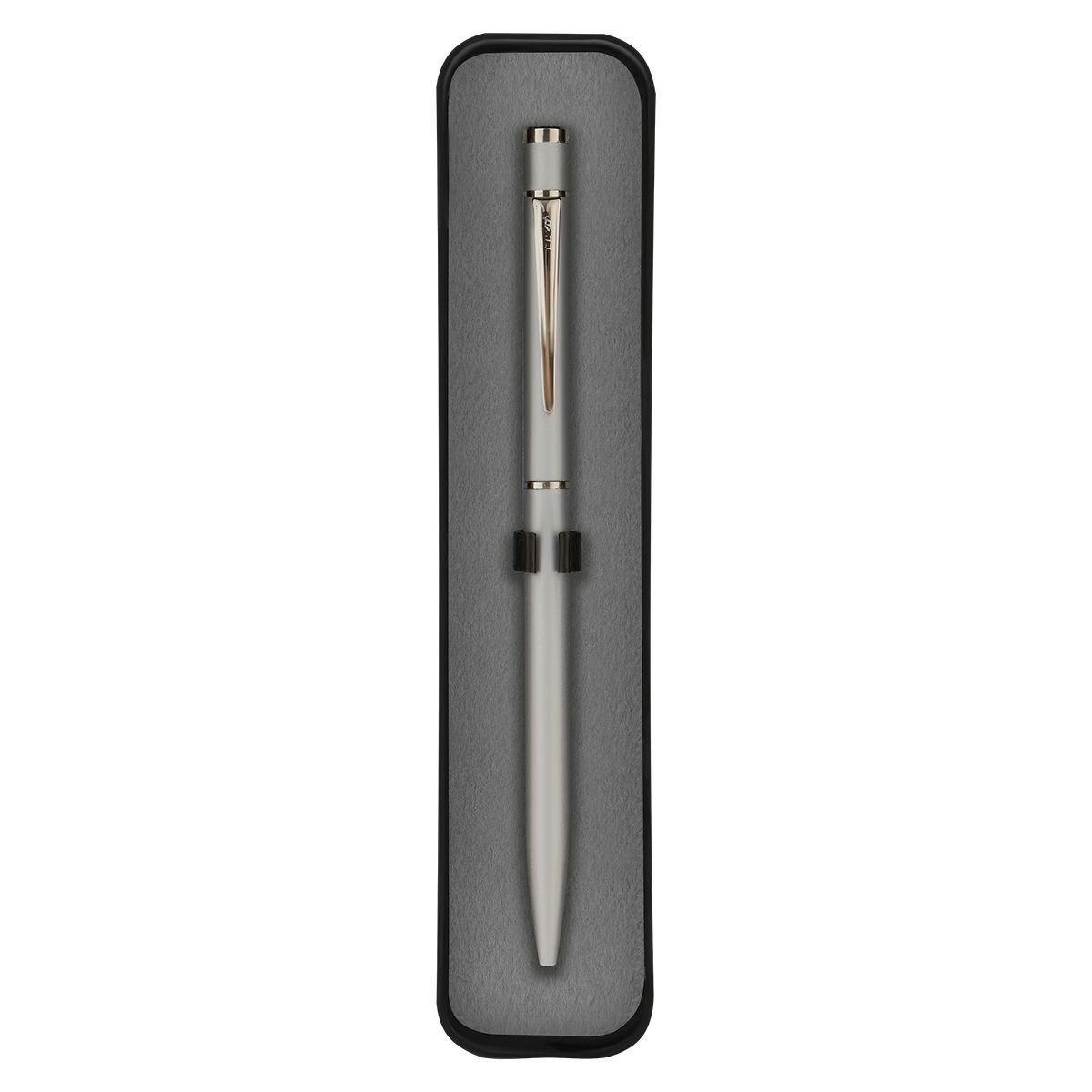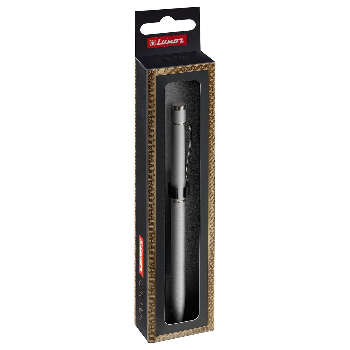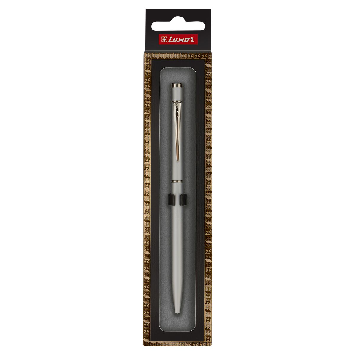 Ручка шариковая Luxor "Sleek" синяя, 0,7мм, корпус серый металлик, поворотный механизм, футляр