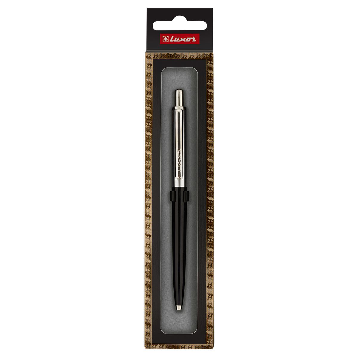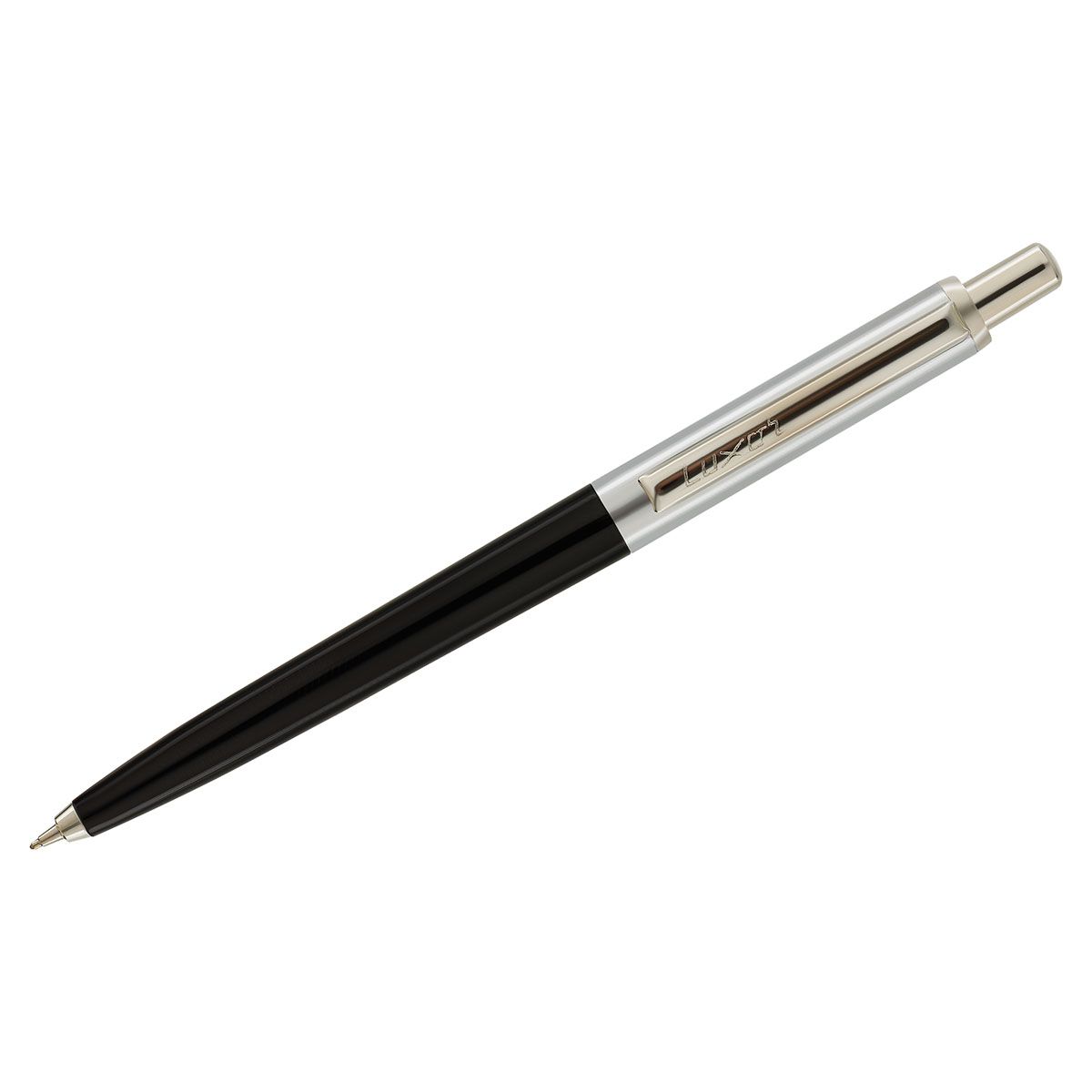 Ручка шариковая Luxor "Star" синяя, 0,7 мм, корпус черный/хром, кнопочный механизм, футляр
