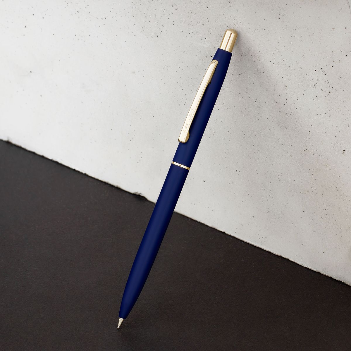 Ручка шариковая Luxor "Sterling" синяя, 1,0мм, корпус синий/золото, кнопочный механизм, футляр