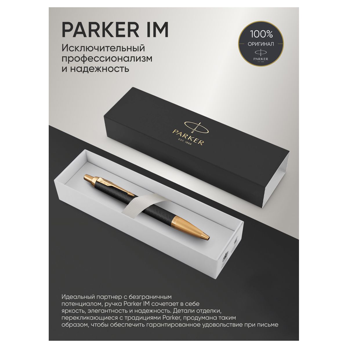 Ручка шариковая Parker "IM Premium Black/Gold GT" синяя, 1,0мм, кнопочн., подарочная упаковка
