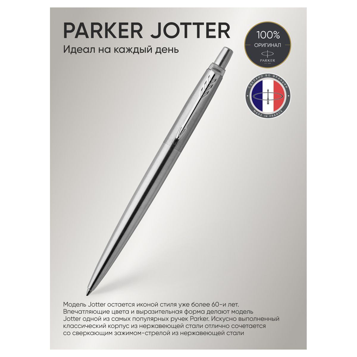 Ручка шариковая Parker "Jotter Stainless Steel CT" синяя, 1,0мм, кнопочн., подарочная упаковка