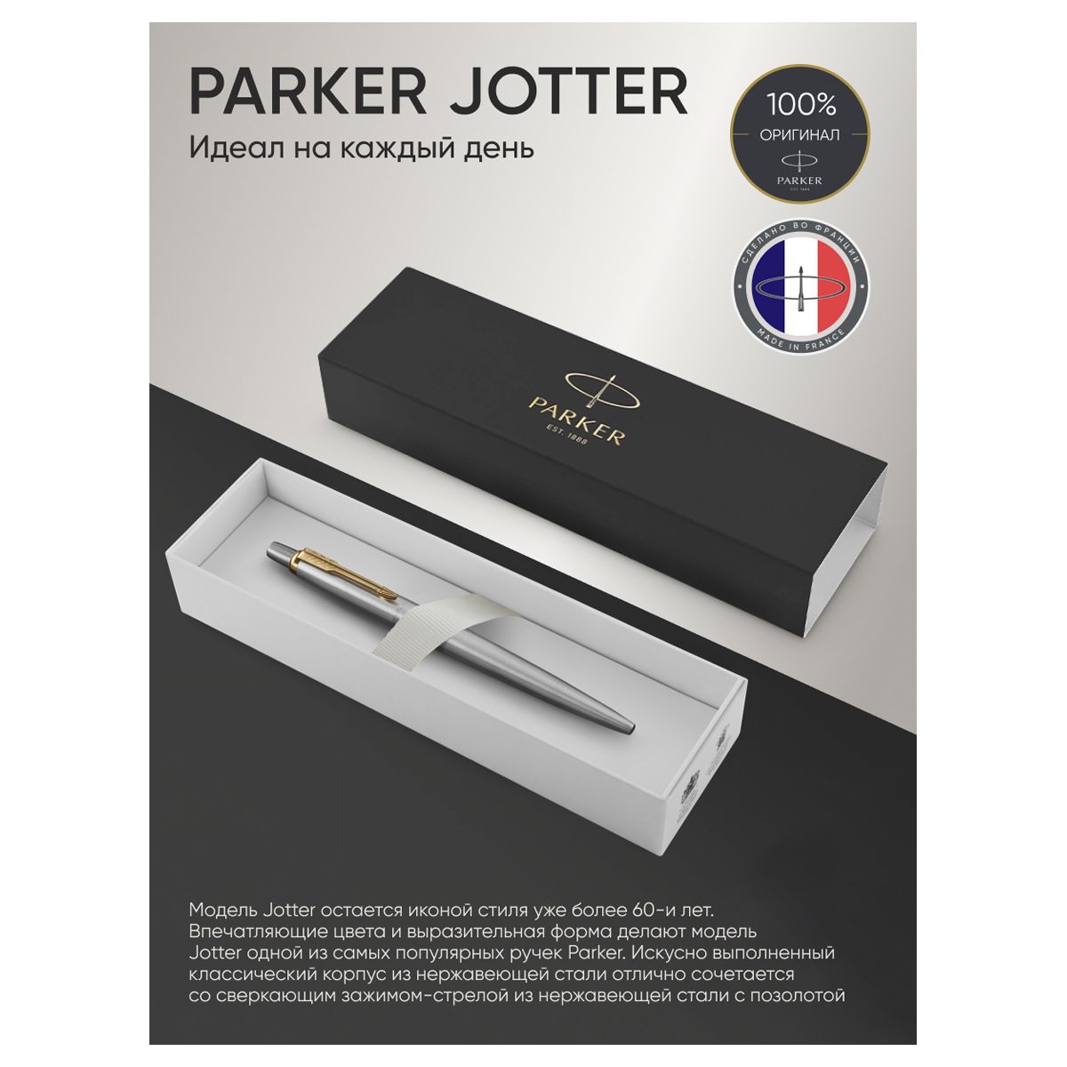 Ручка шариковая Parker "Jotter Stainless Steel GT" синяя, 1,0мм, кнопочн., подарочная упаковка