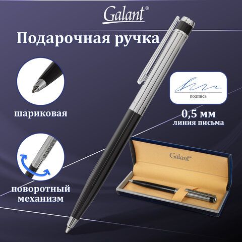 Ручка подарочная шариковая GALANT "ACTUS", корпус серебристый с черным, детали хром, узел 0,7 мм, синяя, 143518